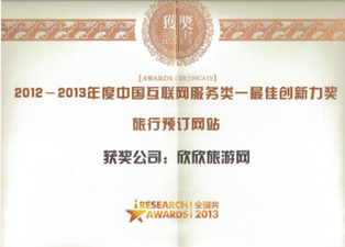2013年04月 荣获“iResearch Awards金瑞奖”颁发的“中国旅行预订网站—最佳创新力奖”