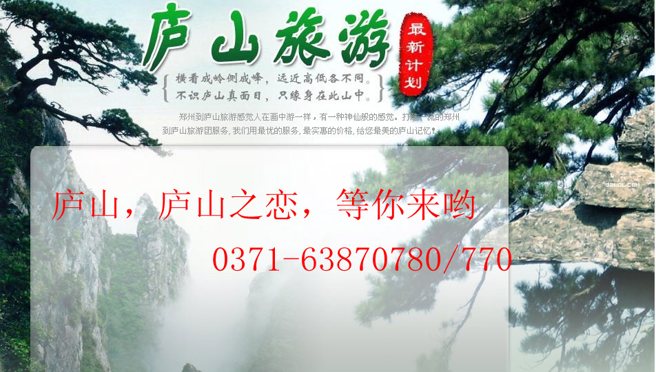 【人气热卖】郑州到庐山旅游(火车双卧4日游)