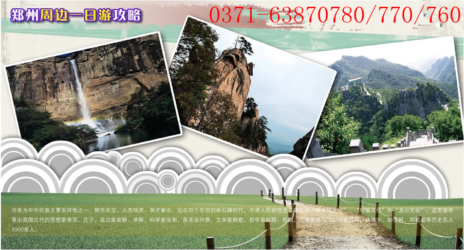 | 郑州到洛阳重渡沟鸡冠洞两日游 | | 发团日期 | 价格 | 报名方式 | | 周二,四,周六发团 | 318元/人 | ①网上支付 | | ②来我社办理 | | ③上门服务 |  | | 重渡沟位于栾川县潭头镇西南部,距洛阳市118公里,栾川县城48公里,九龙山温泉18公里,重渡沟有金鸡河、滴翠河、水帘仙宫等景区组成,有景点200余个,旅游面积30平方公里。重渡沟景区内有竹林千亩,多生于河边路旁,翠竹碧水交织,肥鸭壮鹅嬉戏,具有曲型的水乡风光,在中原堪称一绝。被著名作家张一弓赞誉为"高峡飞瀑藏幽径,绿水秀竹怀古情"。"竖看山水横看竹,上听鸟语下听泉"。 鸡冠洞风景区位于河南洛阳栾川县城西3公里的小双堂沟内,属伏牛山系,海拔1021米,山势雄伟,孤峰卓立,植被覆盖密集,四季景致不同:春季嫩芽吐蕊,夏季绿树成荫,金秋红叶似火,严冬银装素裹,再加上丛林中亭台小庙错落纵横。它形成于约6亿年前的早中更新纪,发现于唐贞观年间,山青、水秀、石奇、洞幽,四季成游。春天,春花烂漫、十里飘香;盛夏,浓荫蔽日、飞瀑流泉;金秋,红叶满山、层林尽染;隆冬,冰挂银条、松柏凝翠。区内一山,山中一洞,山以形名,洞以山名,故曰"鸡冠洞"。 | | | |  | 第一天 | 景点:郑州-栾川 | 餐:中晚 | 宿:景区农家 | | 早6:30郑州集合出发。中午抵达“北国水乡”重渡沟自然风景区。游览:飞虹瀑布、览虹桥、泄愤崖、虬爪池、锁鲛崖、靠背岭、玉女出浴、贵人低头、剑插泉等景点。 | | 第二天 | 景点:栾川-郑州 | 餐:早 | 宿:家中 | | 早餐后乘车赴国家4A级风景区“北国第一洞”-- 鸡冠洞。下午返郑。 |  | | 费用标准: | | 1、交通:往返空调旅游车 2、门票:景区第一大门票 3、住宿:农家3-5人间 4、服务:全程导游陪同 5、保险:含旅行社责任险 6、用餐:1早2正餐(景区农家餐) | | 注意事项: | | 1、当地气侯:气候湿润,空气清新 2、需要带的证件:请携带身份证、老年证、军官证等等有效证件 3、当地路况:路况良好 4、着装提示:因为要走山路,一定要穿一双舒适的运动鞋,舒适的衣服 5、出门需要带的物品:雨伞,常备药:晕车药等 6、女士有没有特别注意事项:由于是山路,女士尽量不要穿高跟鞋、裙子 7、老人、小孩需要注意:由于要走山路,老人和小孩儿一定要穿双舒适的鞋子,尤其是小孩必须要有大人陪同 | |