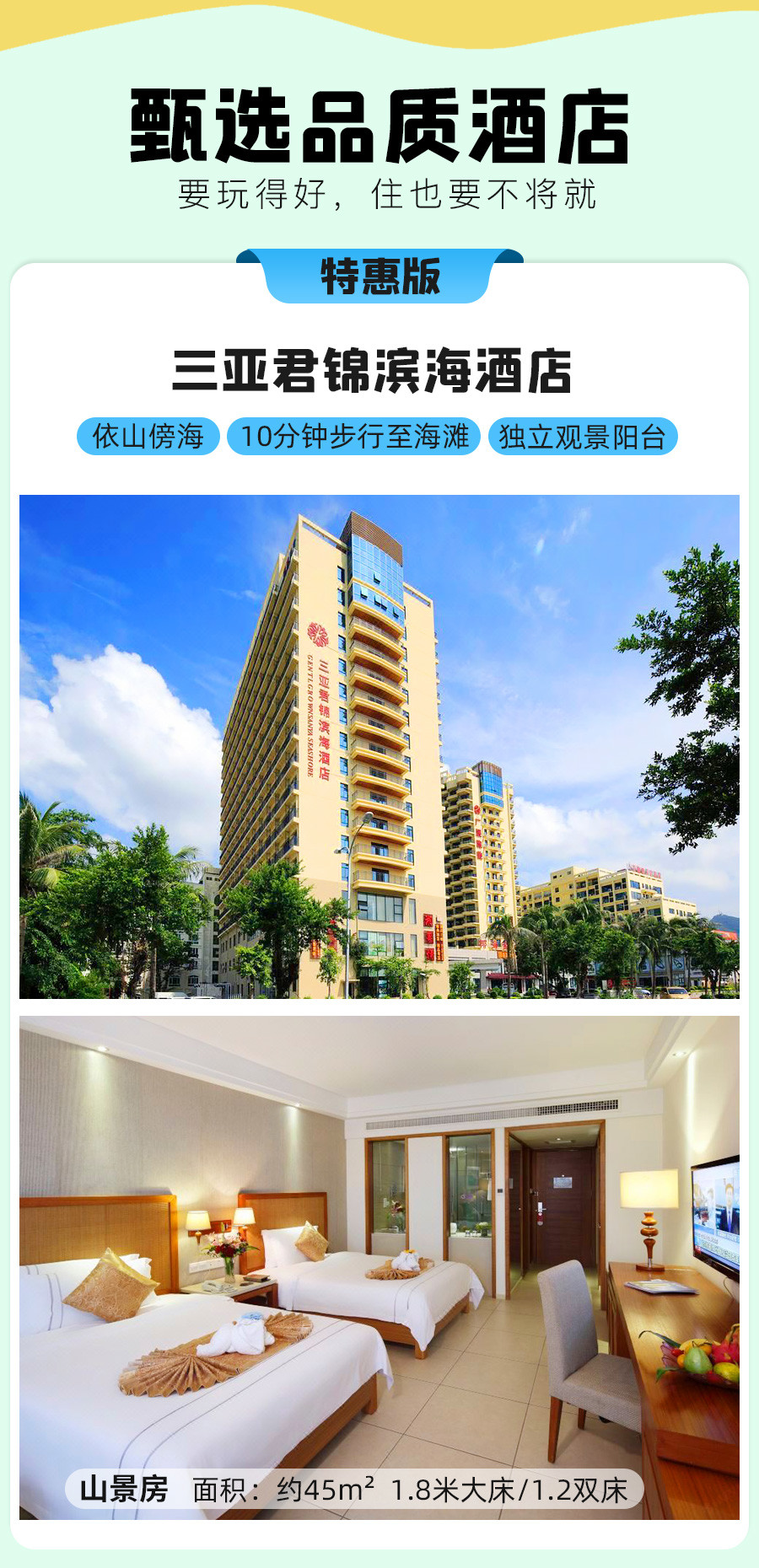 特惠版 三亚君锦滨海酒店-山景房 同级备选酒店:新城-高级房/君亭-豪华房/柏瑞精品-市景房/宝宏-山景房