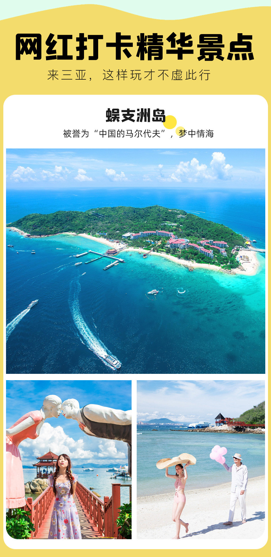 7、蜈支洲上岛限制人群:65岁(含)以上人群购买需提前咨询,否则无法接待。70岁(含)以上老人、孕妇、行动不便者、智力有障碍者、酗酒或精神状态不佳者、高血压、心脏病等突发疾病患者等人群不允许上岛;