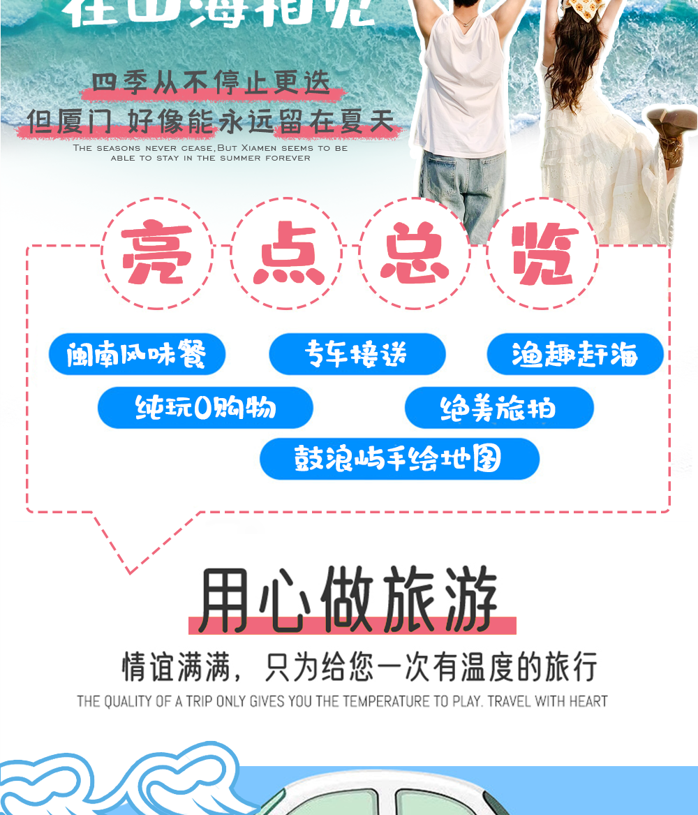 3.在厦门各大景区均有购物店或者小商贩兜售旅游纪念品。请各位游客谨慎购买并索要发票。我社不负责商品质量,不提供退货、传递、更换等服务,特别备注鼓浪屿特产店不算购物店,请游客按照个人需求购买。