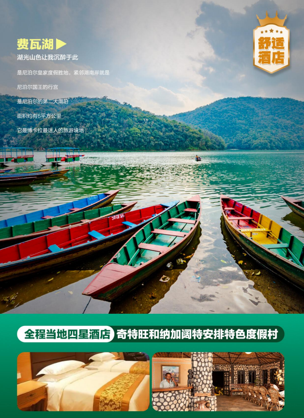 行程所列酒店双人标准间,尼泊尔酒店规模较小设施比较陈旧,床位比较小,酒店一般不提供一次性洗漱用品餐食行程中所列餐食(飞机餐是否收费请参照航空公司规定)7早,14正餐