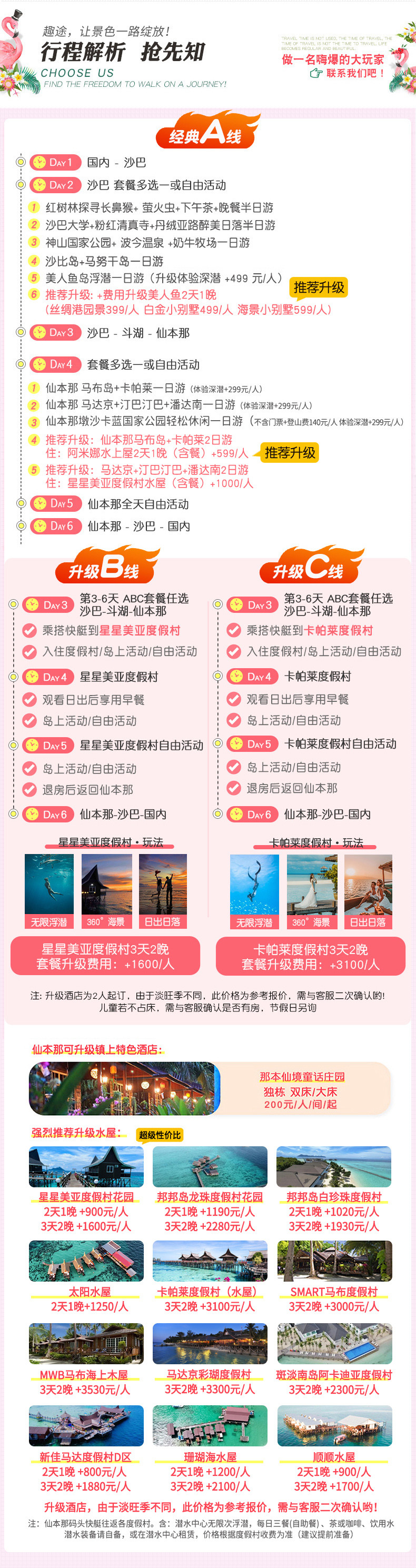 郑州去仙本那沙巴旅游请选好参团日期,并来电询问最早团期,旺季期间价格可能会稍有变动,具体价格以来电咨询为准!