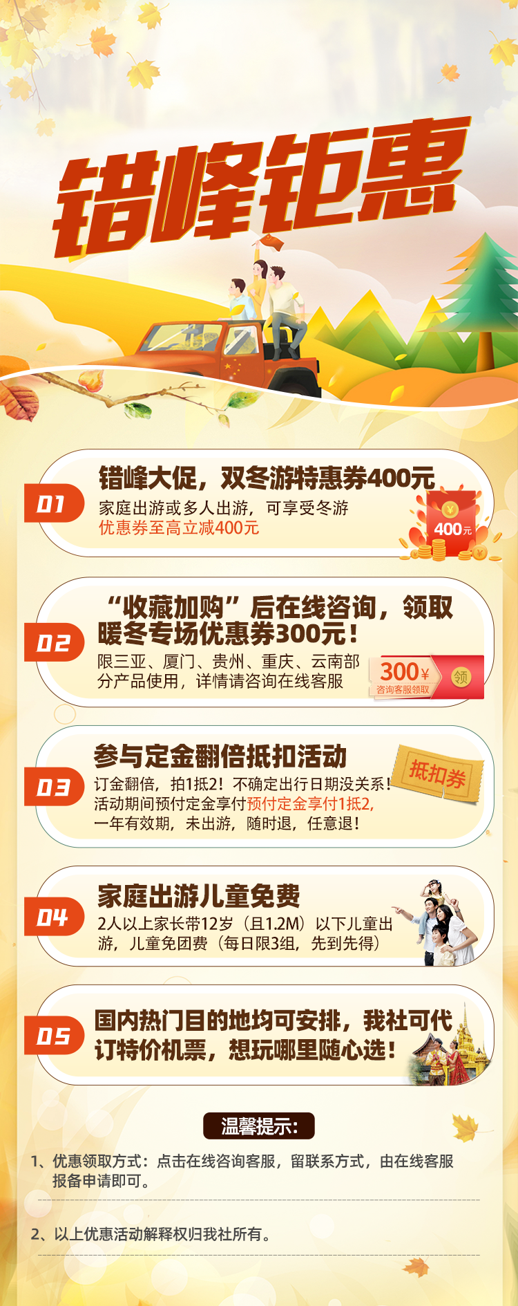 2.最终预订优惠价格以您提交订单,旅行社确认后为准;