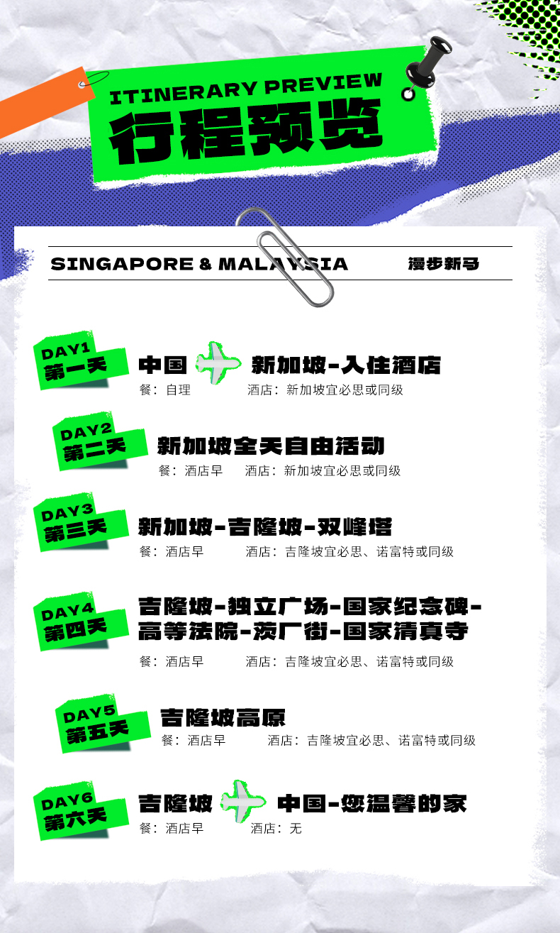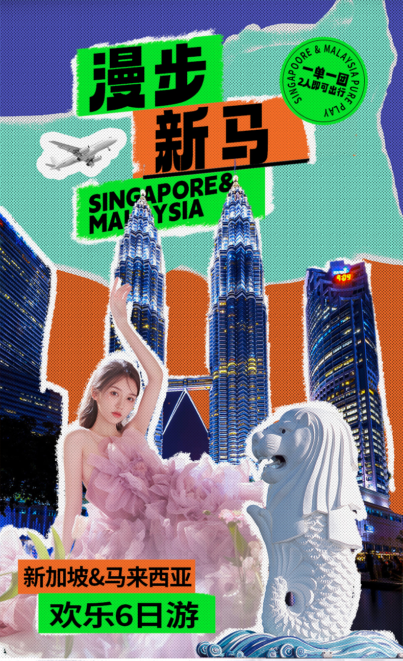 【0购物0自费】新加坡+马来西亚吉隆坡6天5晚半自助游/省去中段坐车疲劳/自由活动+茨厂街+独立广场+国家纪念碑+国家清真寺景点门票行程中所列景点首道大门票大交通飞机往返经济舱机票