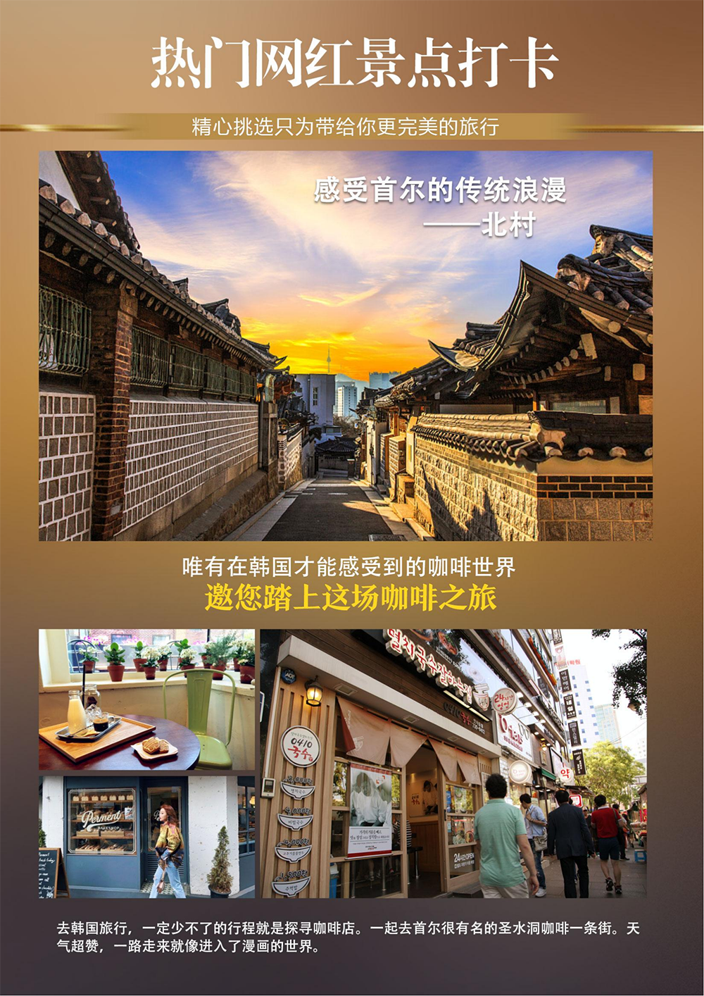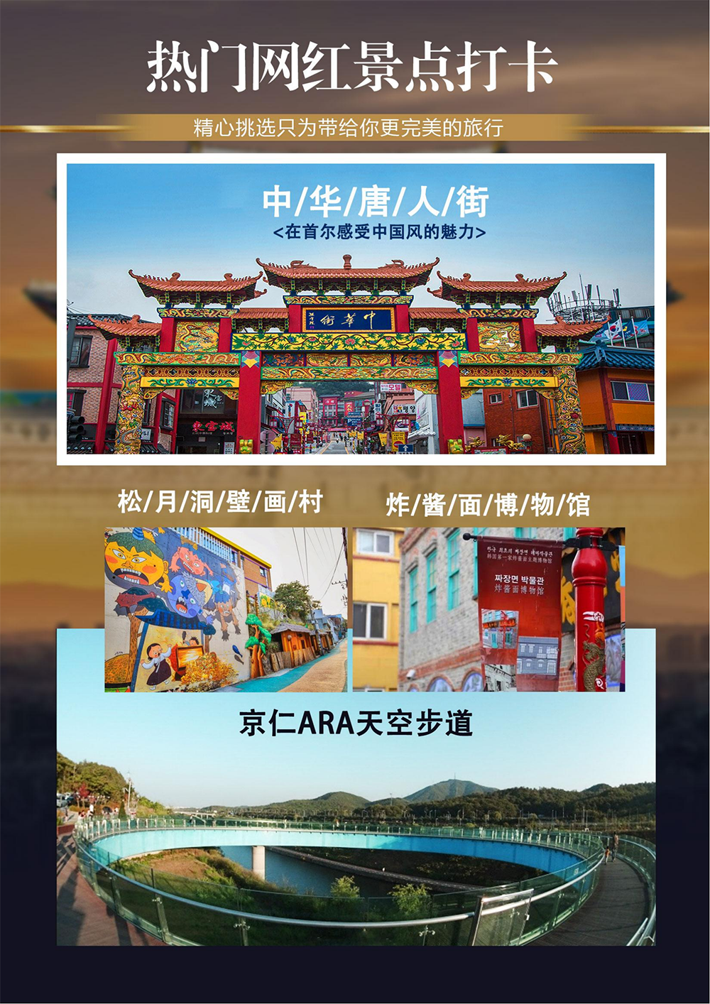 韩国首尔全景4到6天半自助游·有济州岛/釜山连线(北村韩屋+松月洞壁画村+炸酱面博物馆+圣水洞咖啡街+新浦市场+中华街)景点门票以客服发送的行程单中所列的景点为准,包含收费景点的大门票。大交通飞机往返经济舱机票