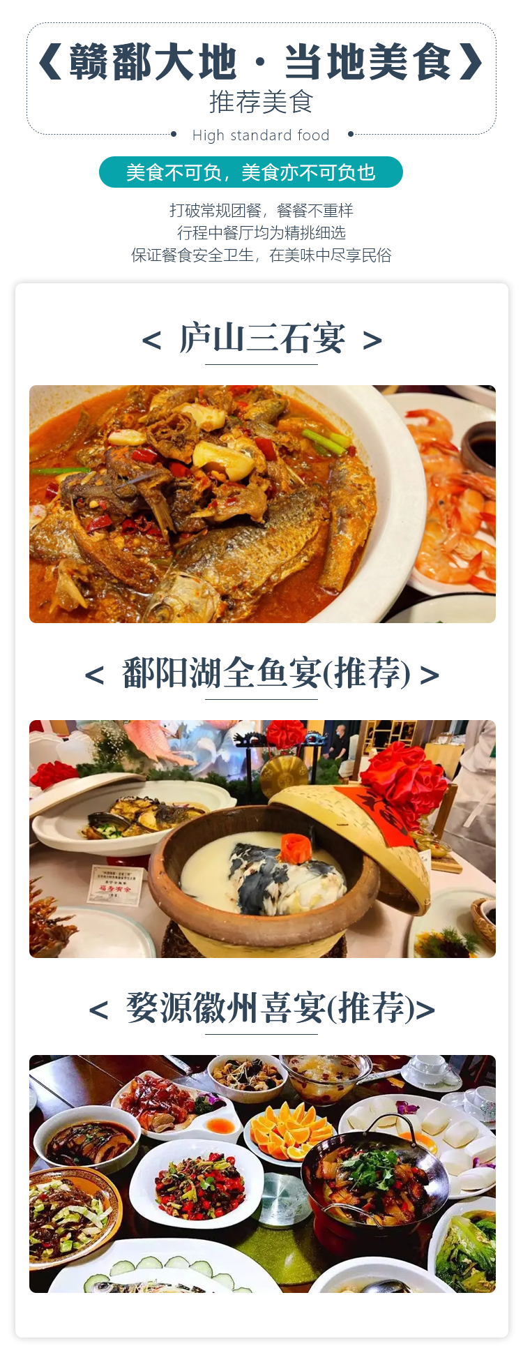 升级特色餐:鄱阳湖全鱼宴、婺源粉蒸宴、庐山三石宴