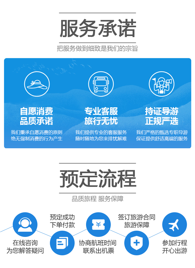 1、行程以当天实际游览为准,旅行社在不减少景点的情况下,有权调整行程先后顺序。
