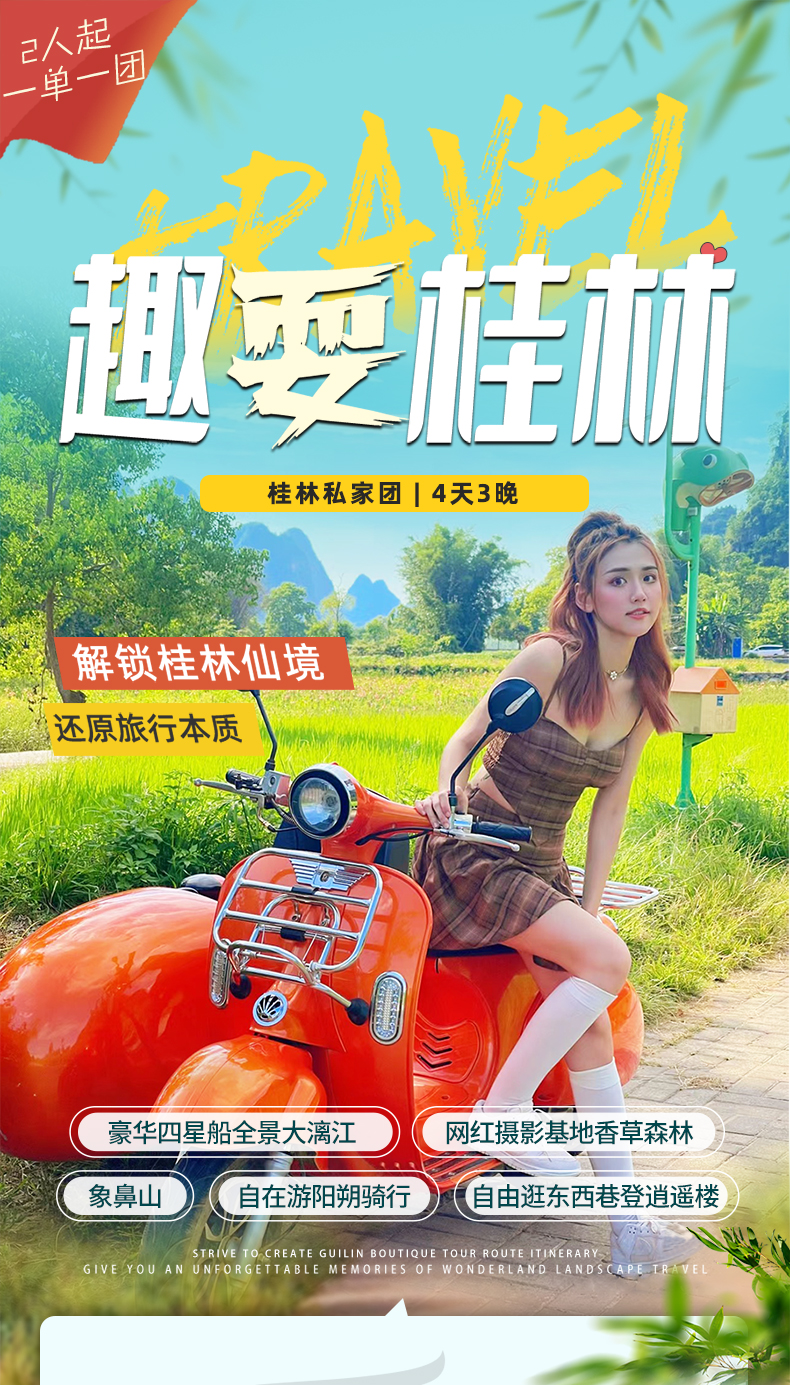 【2人起一单一团·私家小包团】桂林+漓江+阳朔4天3晚跟团游(豪华船游漓江+银子岩+徒步遇龙河+阳朔西街+象山景区+南国花园+叠彩山)费用包含景点门票行程中所列景点首道大门票