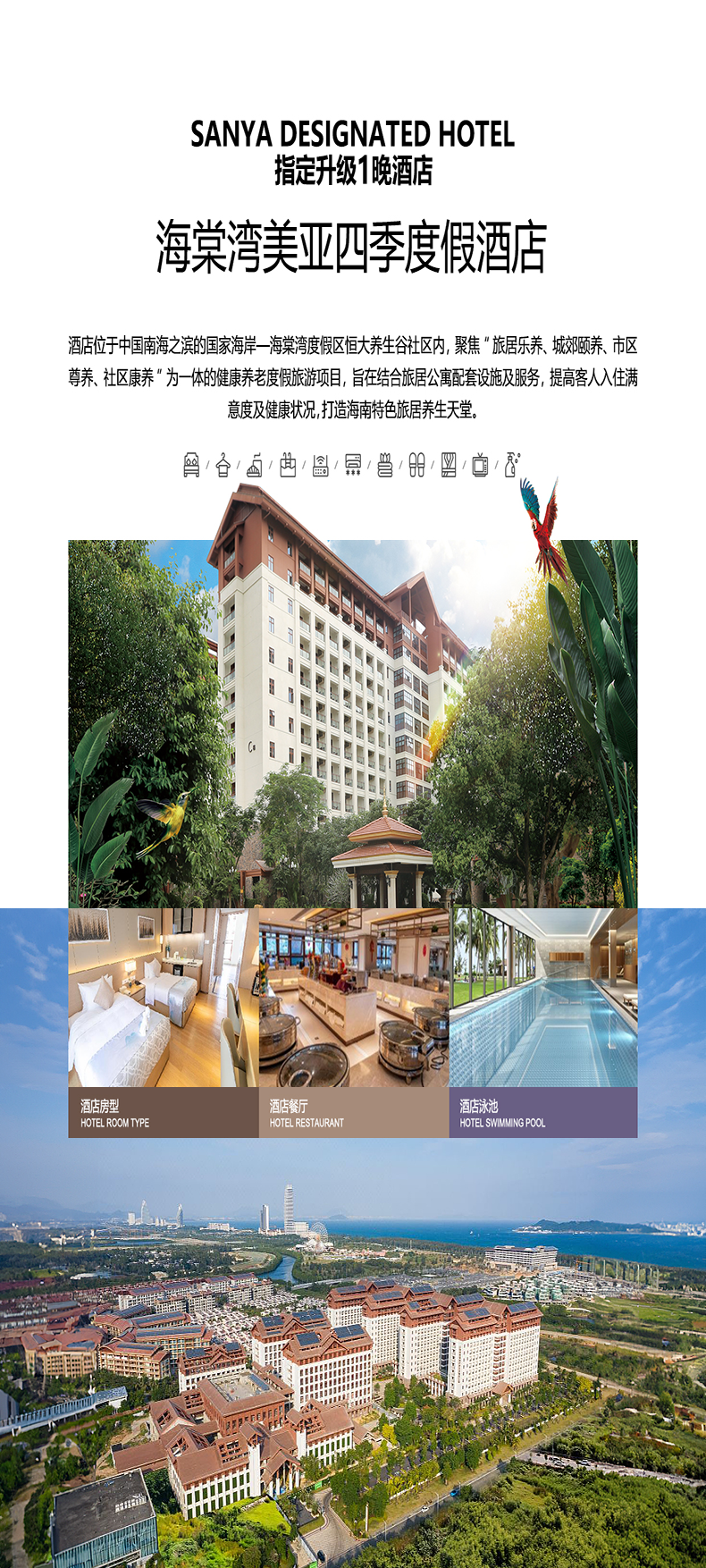 【三亚指定酒店参考】美亚四季酒店、恒大养生谷或同级