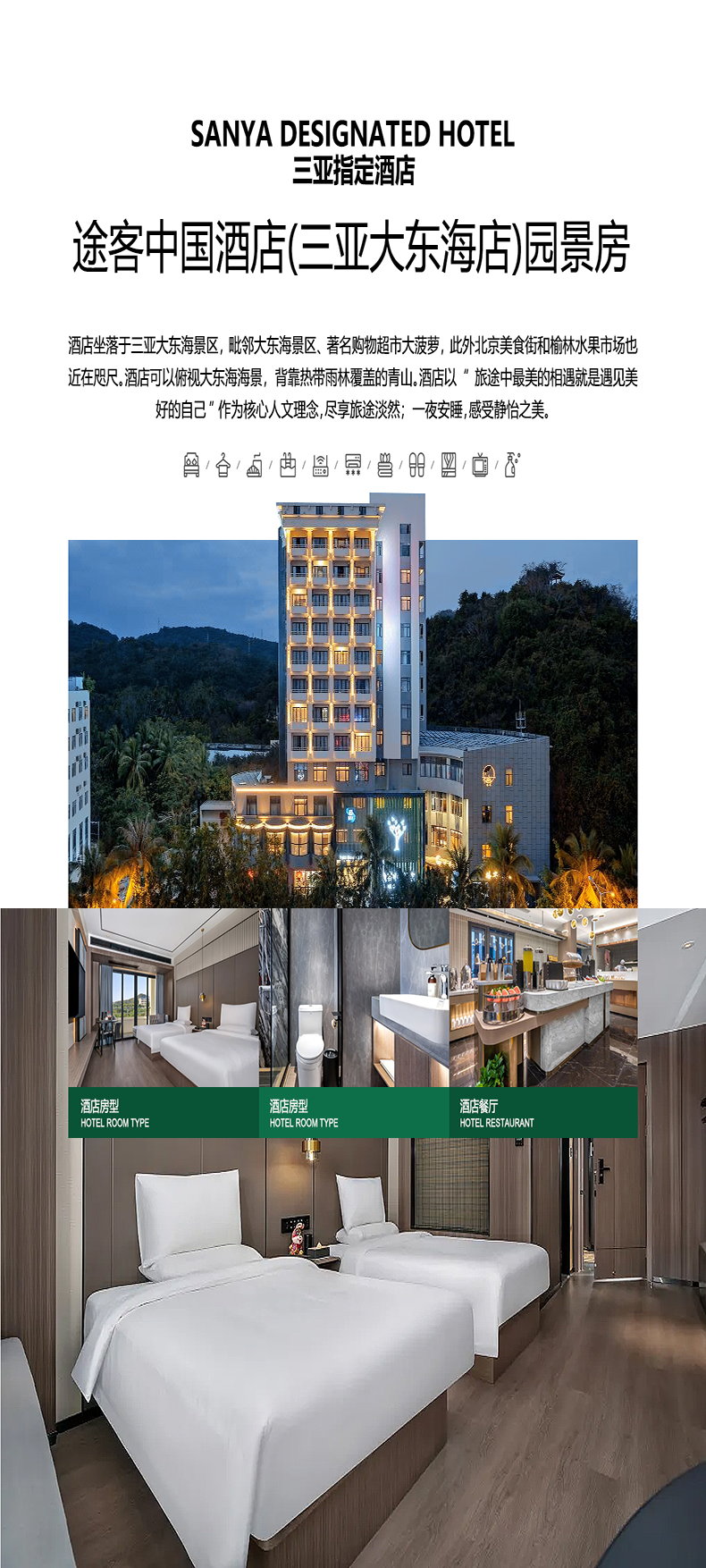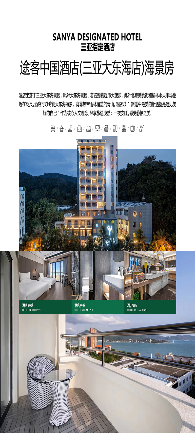 【可升级海景酒店】君锦主楼海景房、大东海凯瑞莱、海虹主楼海景、途客中国海景房、黄河京都行政海景房或同级