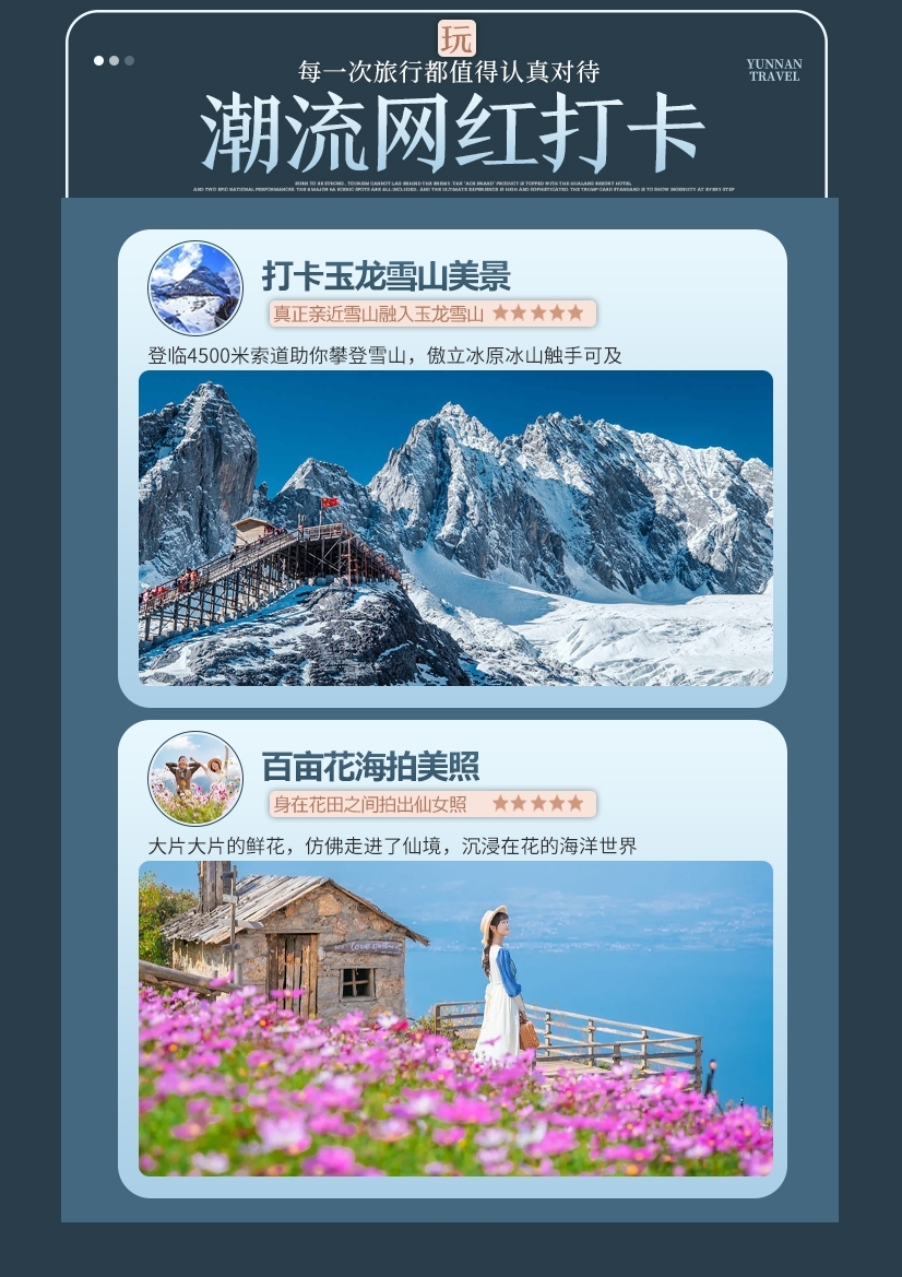 7. 因玉龙雪山冰川大索道实行限票制,旺季(暑假、寒假、春节等节假日)期间出行不保证上大索道,如实际出行时上不了大索道则退门票差价,望知晓。