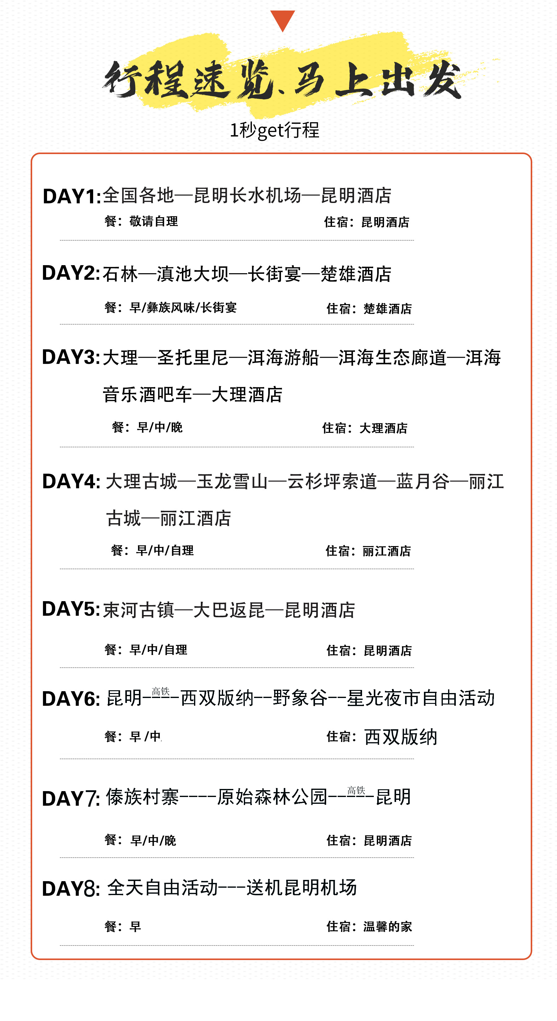 9. 人群说明:因云南属于偏远高原地区,为了客人的游玩舒适性,本产品仅接待26-60岁身体健康的正常人出游,24岁以下及60岁以上的客人需有正常人陪同出行,不正常年龄以及单人单独出游请先咨询客服,直接下单不予以接待,视为无效订单。本产品属于特价产品,优惠政策仅针对国内游客,非优惠人群的客人请咨询客服后下单,暂不接待云南、港澳台、外宾、揭阳、醴陵、藏族等地区以及律师、教师、记者、旅游从业者等人群,直接下单恕不接待,视为无效订单,望知晓。