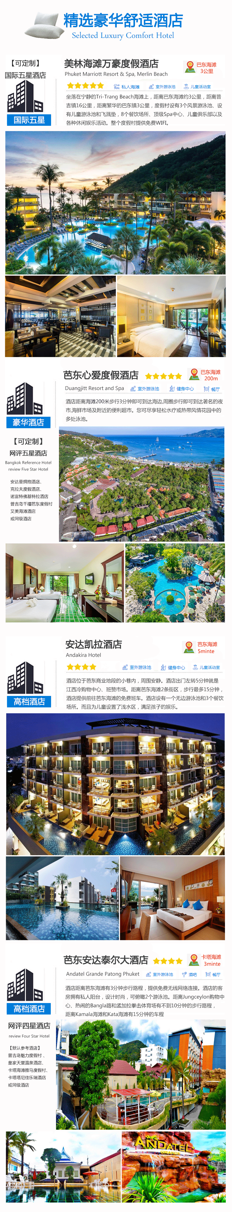 参考酒店:泰国普吉府 网评5星:▲阿里卡酒店 Areca Resort、▲威尼斯度假别墅 Craft resort & villas、▲达拉酒店 Dara Hotel