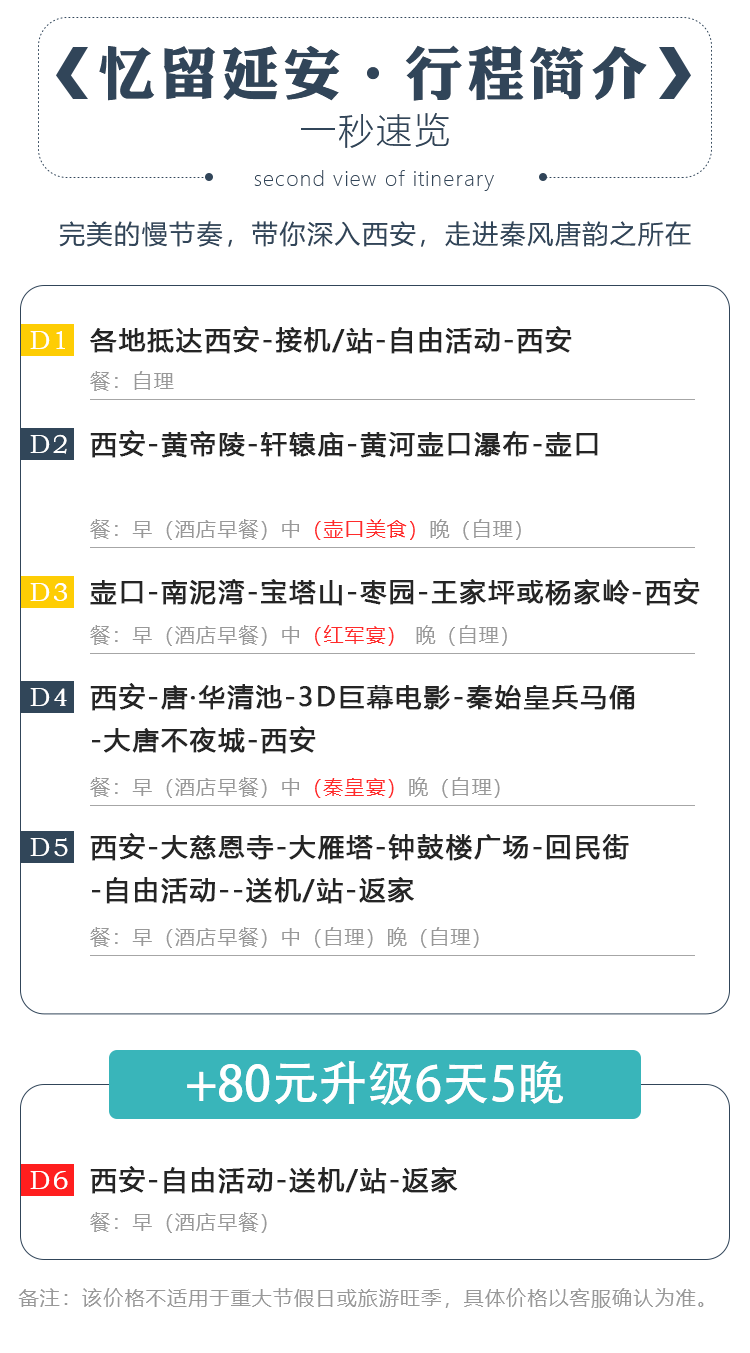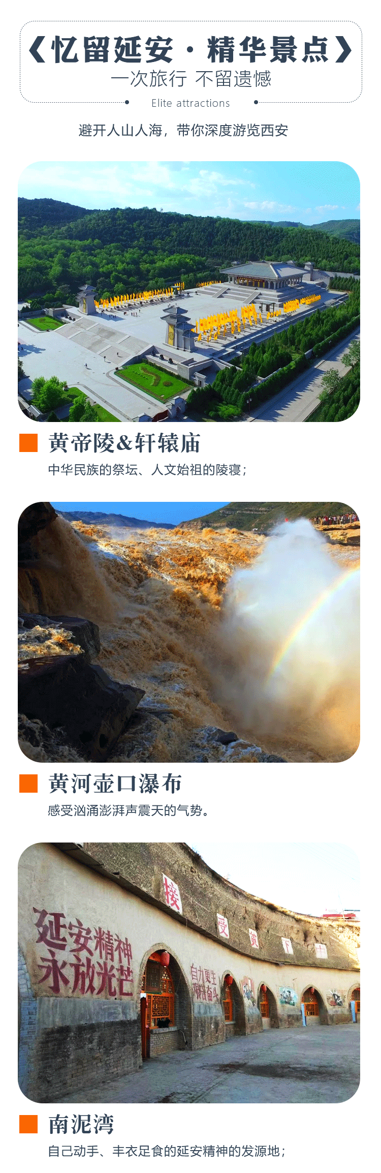 【无购物】陕西西安+壶口瀑布+延安5天4晚跟团游(酒店可升级+黄帝陵+王家坪+兵马俑博物馆+华清宫+慈恩寺+钟鼓楼广场+回民街)景点门票行程中所列景点首道大门票