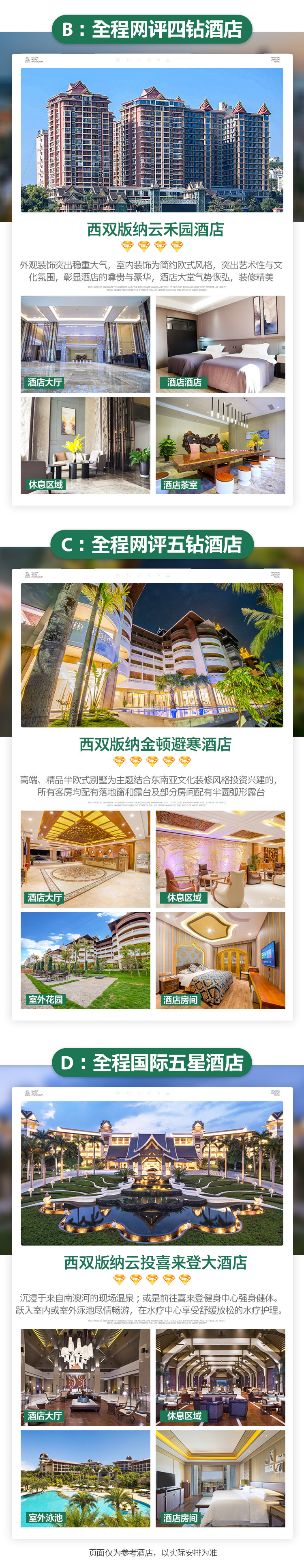 全程网评五钻酒店:西双版纳金顿避寒酒店、景洪远达雨林时光酒店、云南航空西双版纳观光酒店、华美达副楼、西双版纳世纪金源大饭店或同级