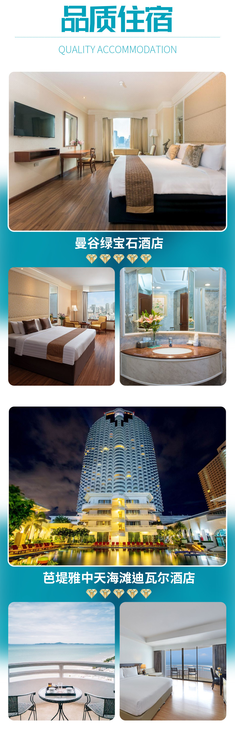 曼谷国际机场往返接送服务住宿行程所列酒店5晚住宿费用,标准2人间