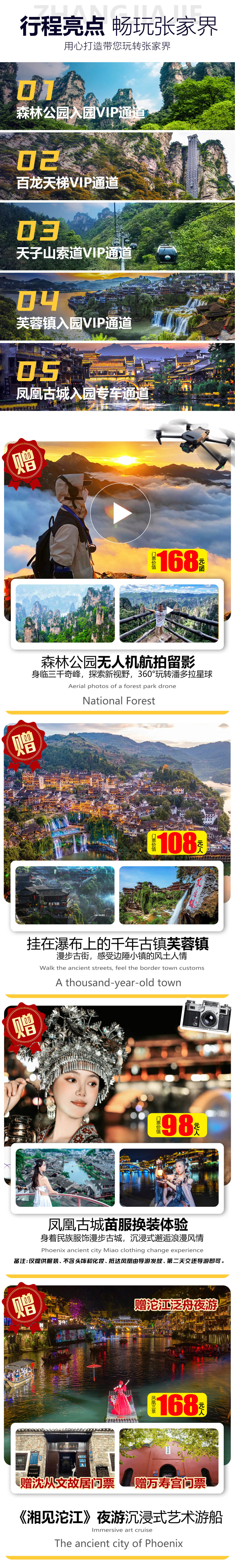 【5大VIP景点通道】6人顶配团 张家界凤凰古城5日游(森林公园+天门山+玻璃桥+黄龙洞+凤凰+芙蓉镇+苗服旅拍+湘见沱江泛舟)张家界武陵源国家森林公园大门票