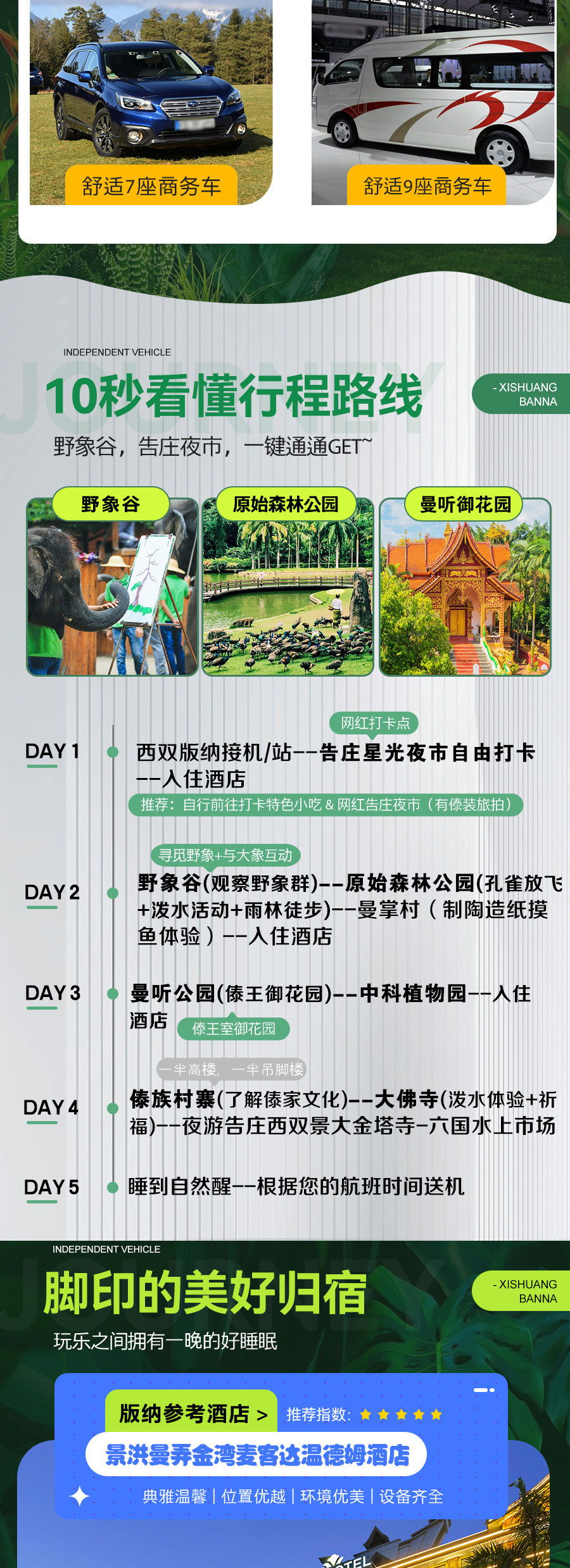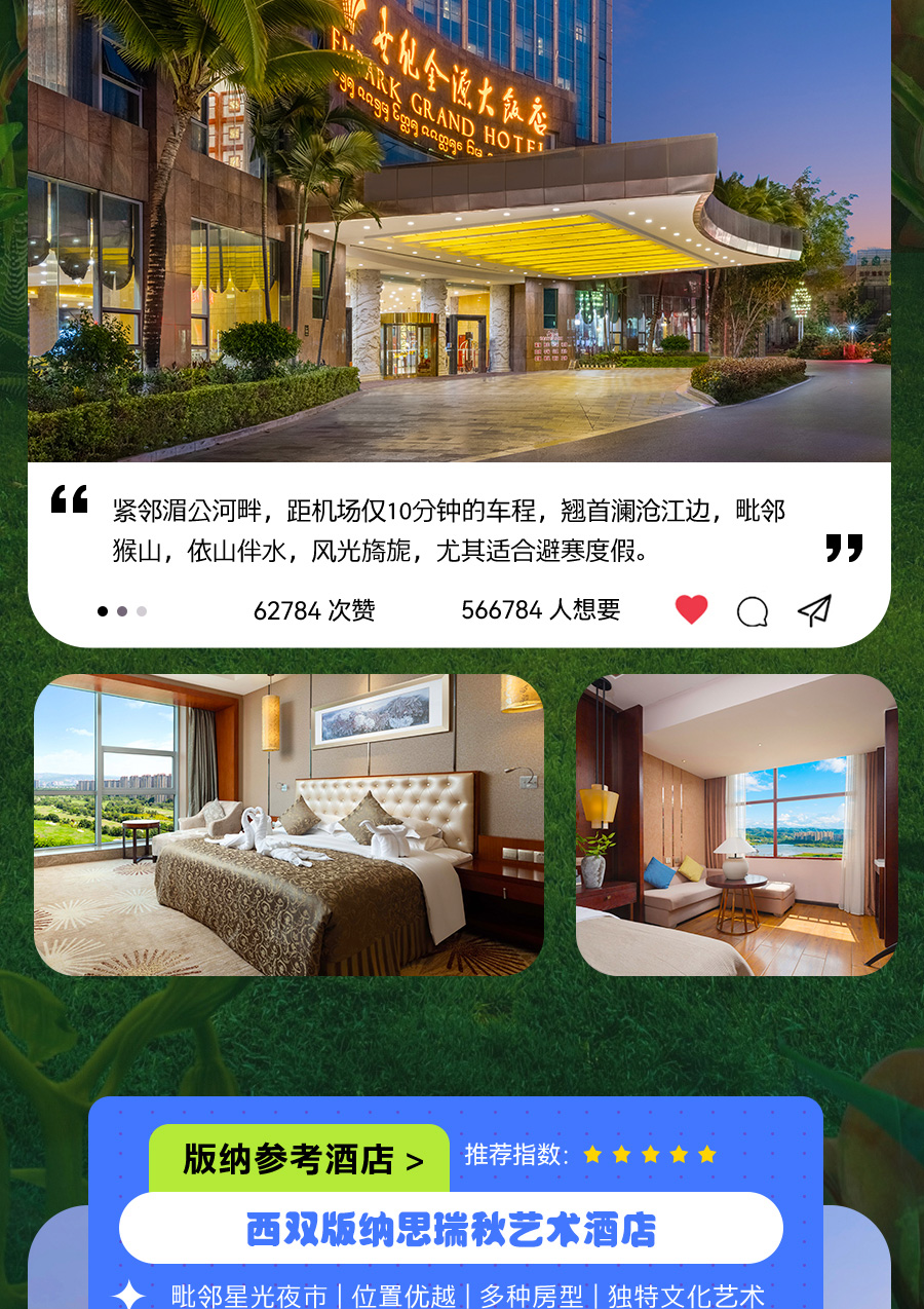 全国直飞西双版纳5日游·VIP专车私密团【豪华酒店·告庄酒店任选/私密专车服务/告庄星光夜市/无差评/资深达人带你玩转西双版纳/网红推荐】景点门票行程中所列景点首道大门票大交通飞机往返经济舱机票