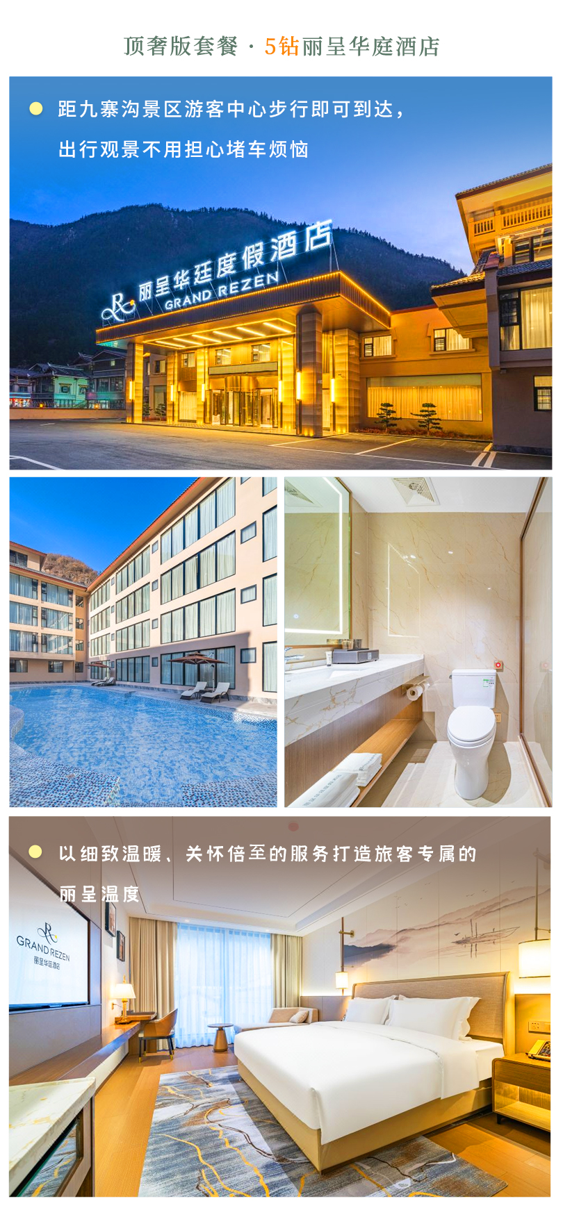 顶奢套餐:九寨沟入住当地5钻或5星天源豪生(非花园楼)/丽呈华庭酒店/施柏阁/希尔顿花园2晚、黑水入住当地3星或3钻羊茸哈德/远山拾梦/央宗林卡/达古冰川酒店1晚(A线)、都江堰入住当地4钻或4星古城度假/中心国际/上禾国际/维亚纳南桥店/喆啡景区店1晚(B线)、成都入住当地4钻或4星桔子/美丽华/锦著酒店(C线);;