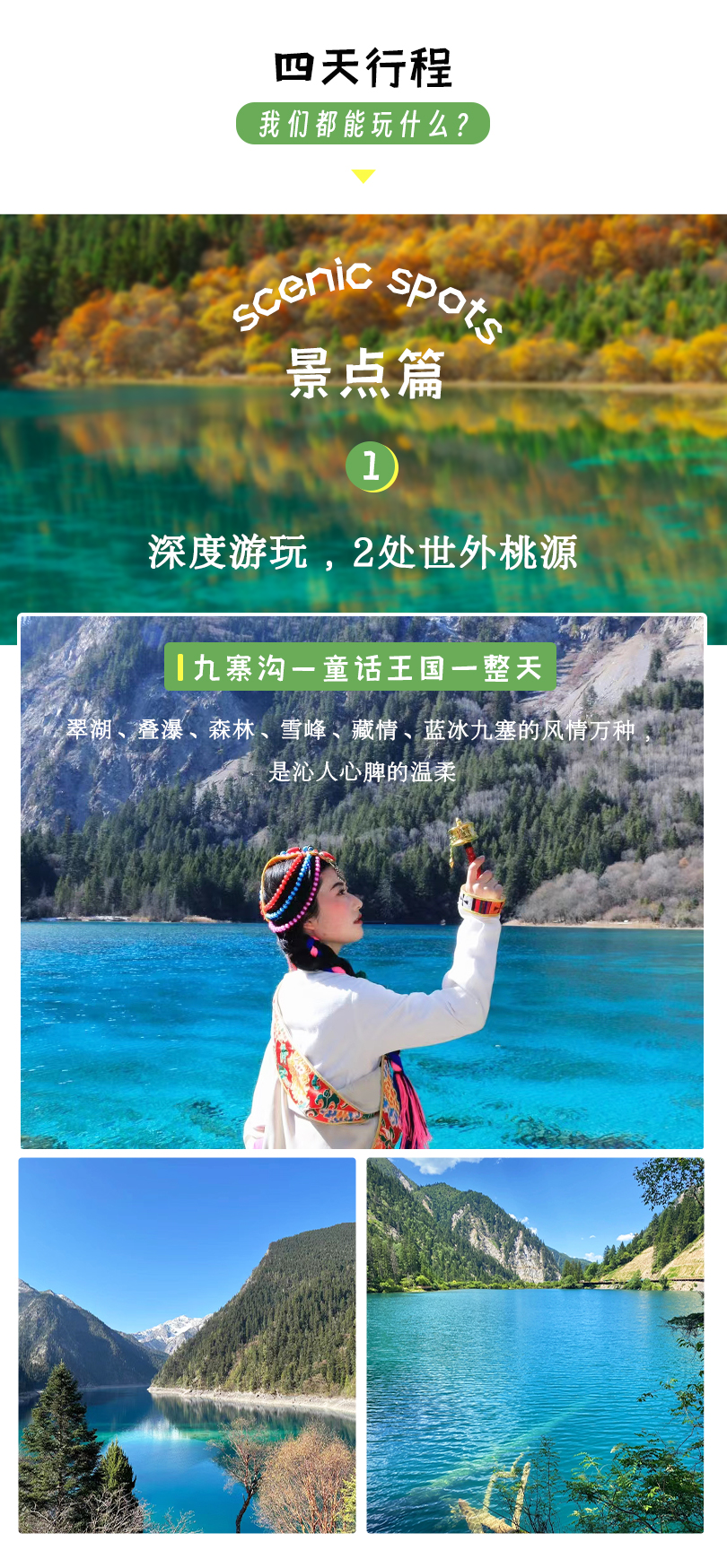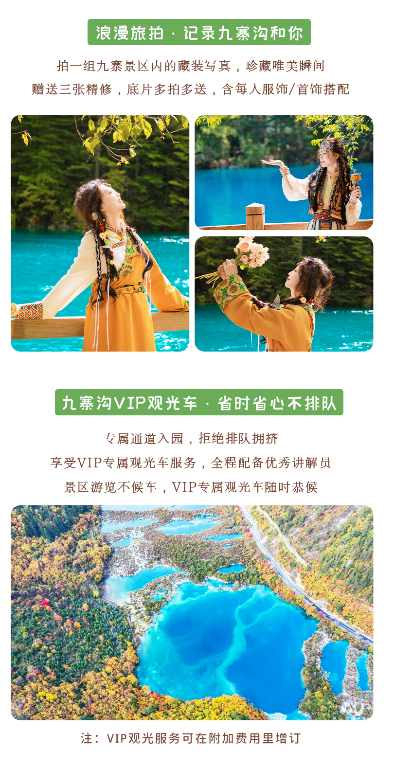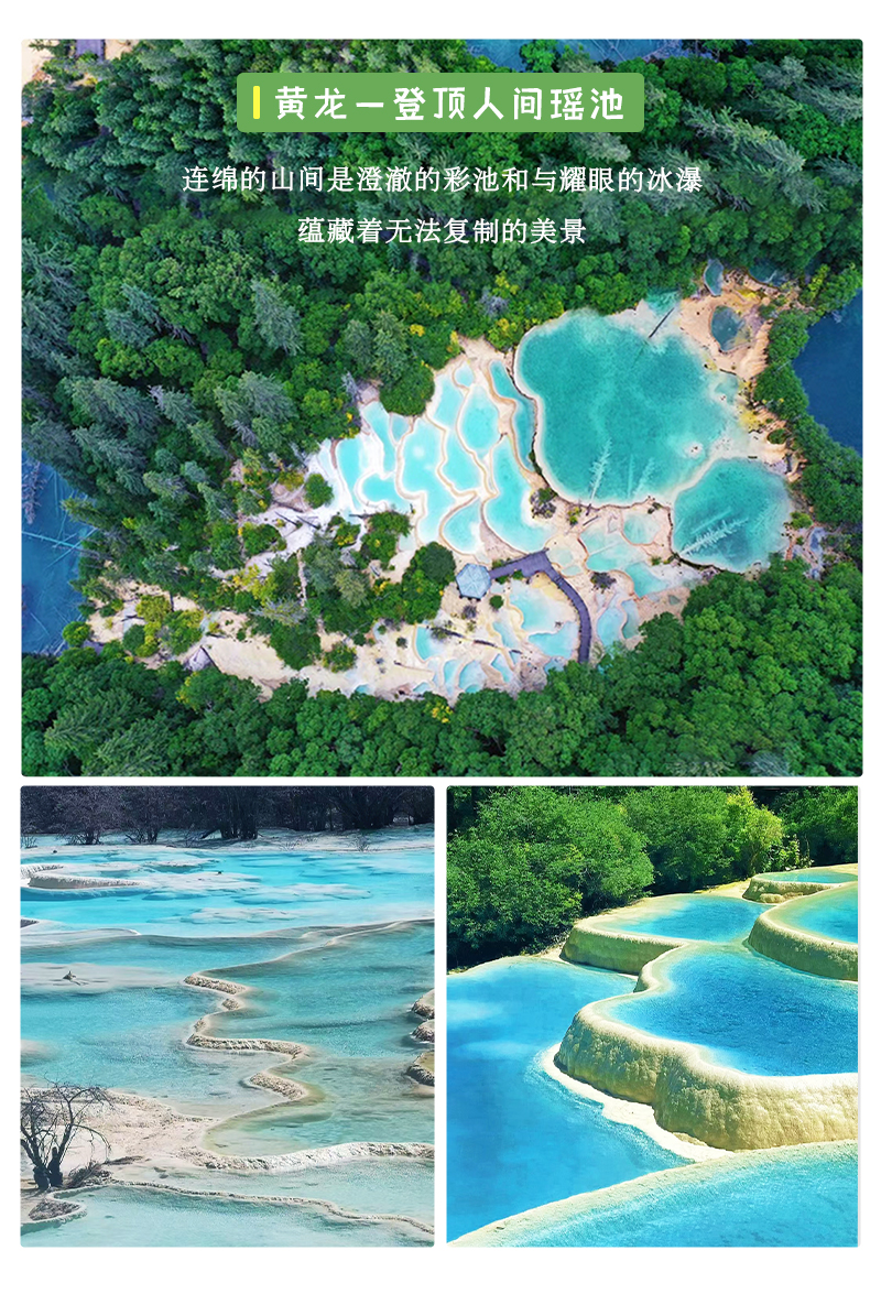 景点门票可在附加服务里增订门票+观光车+必须索道一价全含套餐,让您的旅行更省心;(黄龙观光车为限量,如遇没票将退20元/人)