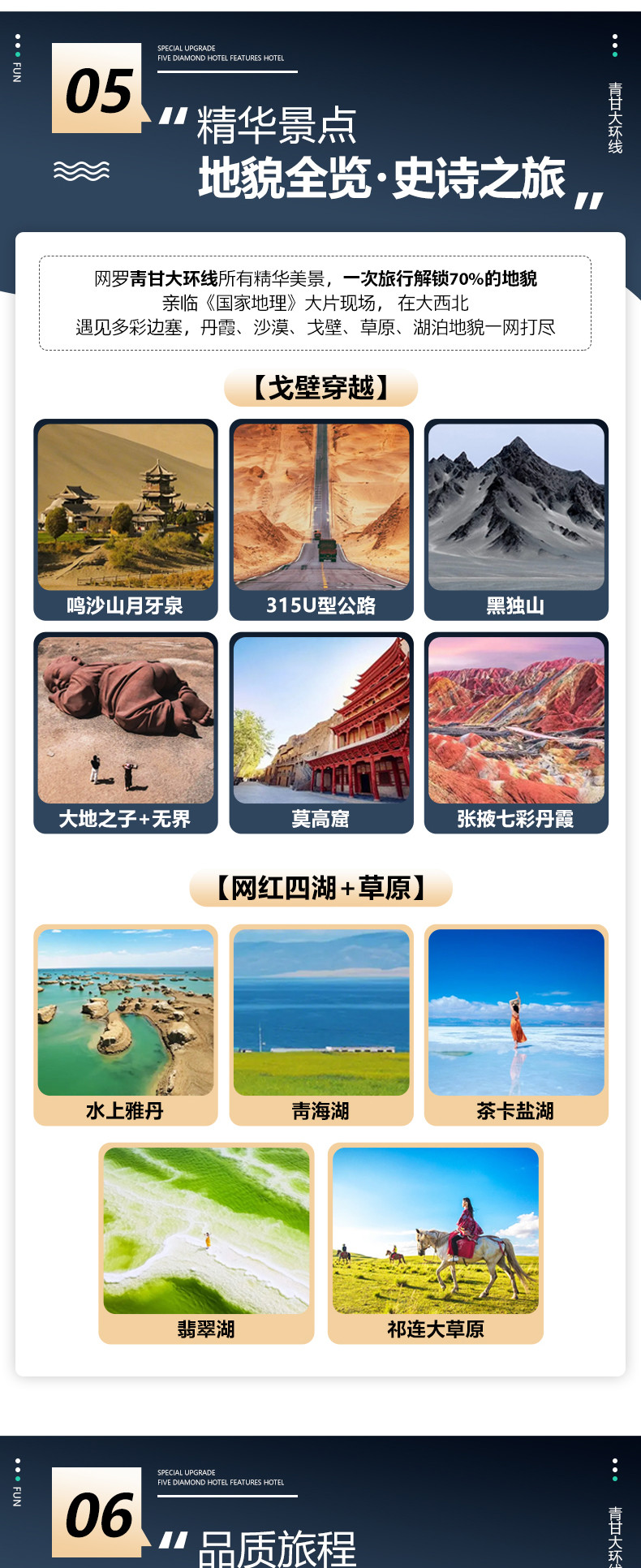 只含首道门票不含景区小交通:1.茶卡天空壹号2.水上雅丹、3.翡翠湖、4.鸣沙山月牙泉、5.莫高窟B票、6.七彩丹霞 7.青海湖黑马河