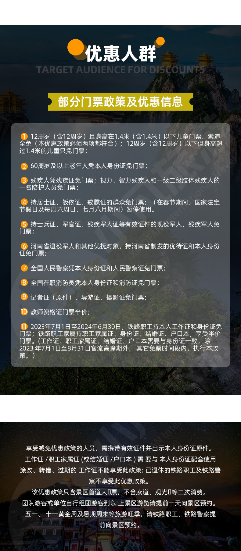 3.若出行中有(儿童、老人、学生、军人、伤残人士)等特殊人群,可先在线提交订单,客服会联系您确认相关优惠政策;