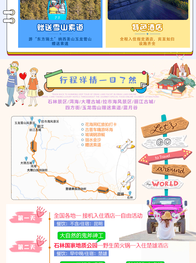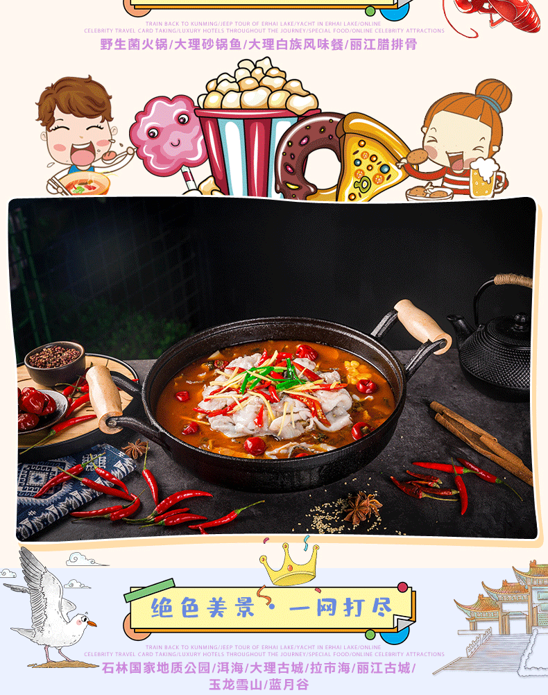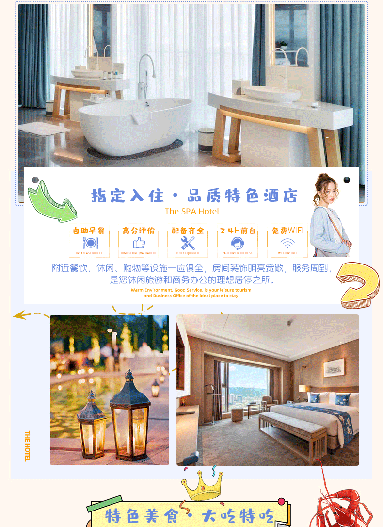 正餐十菜一汤(含特色餐)十人一桌,人数减少菜数酌减。早餐(房费含早,不吃不退早餐,若小孩不占床,则须补早餐费,按入住酒店收费规定,由家长现付)司导服务当地中文导游