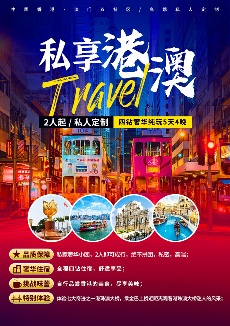 【1人出发】香港+澳门5日游(4钻酒店·纯玩0购物·太平山套票/山顶缆车往返/凌霄阁摩天台/杜莎夫人蜡像馆·港珠澳大桥+威尼斯人+大三巴)