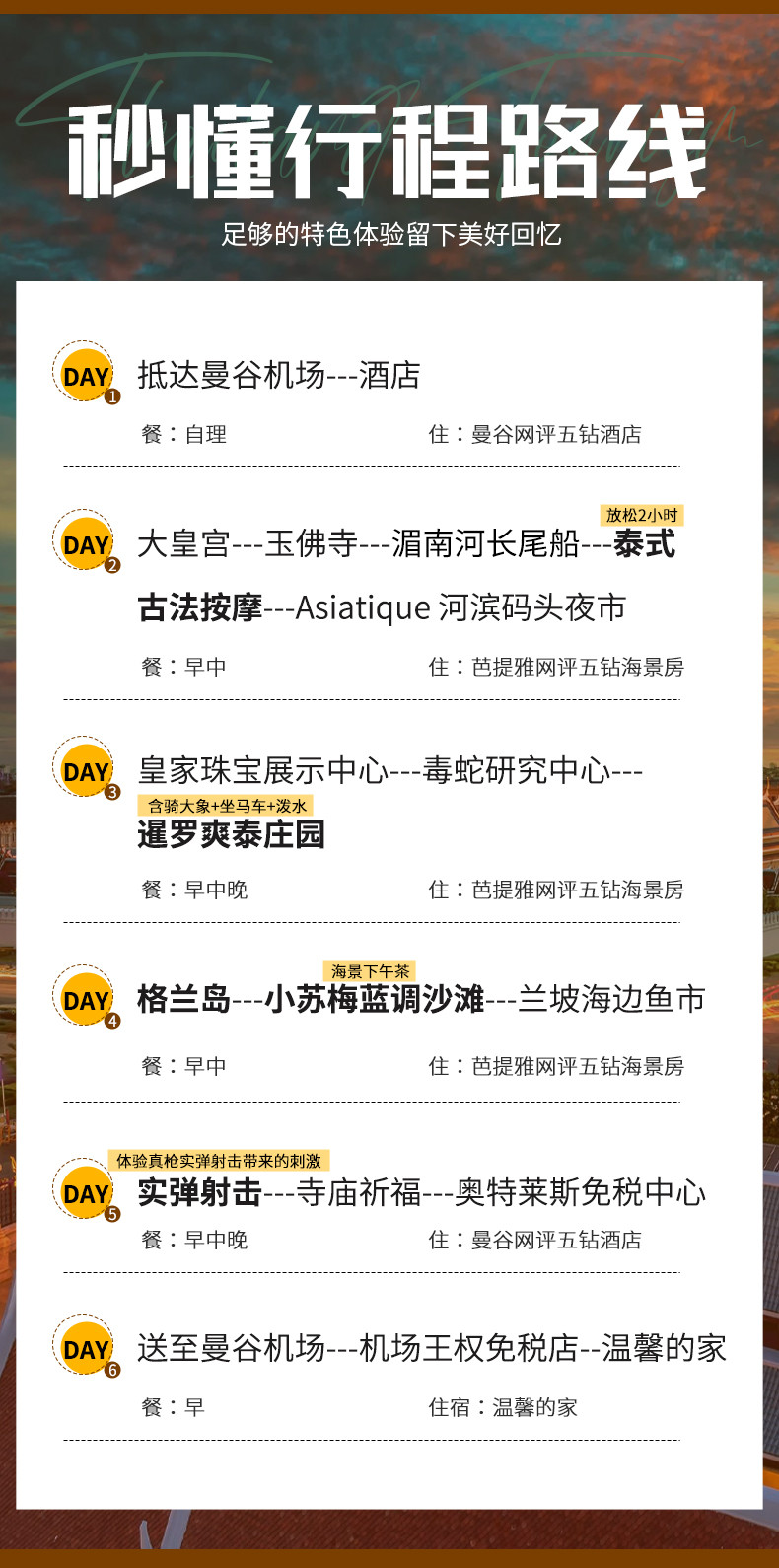 郑州去泰国6日游游请选好参团日期,并来电询问最早团期,旺季期间价格可能会稍有变动,具体价格以来电咨询为准!