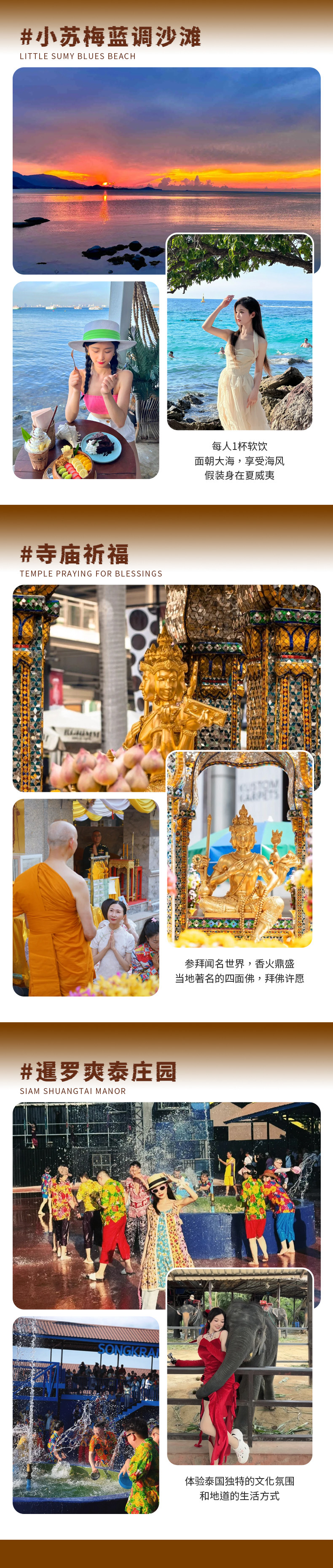泰国机场往返接送服务住宿行程所列酒店5晚住宿费用,标准2人间餐食行程中所列餐食(飞机餐是否收费请参照航空公司规定)5早,5正餐