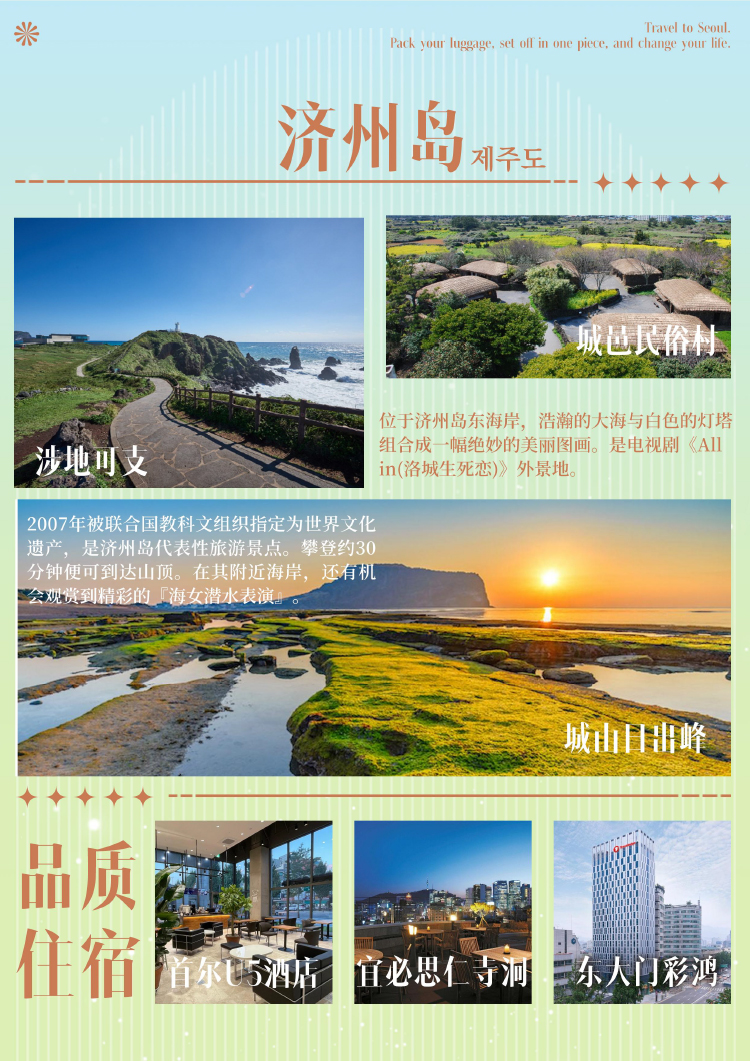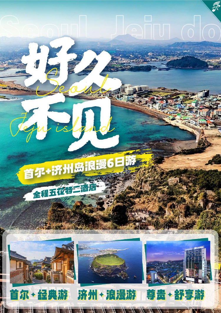 【全国出发】韩国首尔/济州岛/首尔+济州岛5天4晚跟团游(1-2天自由活动+韩式五花酒店+韩式汗蒸+南山韩屋村+南山公园+首尔塔+青瓦台)景点门票行程中所列景点首道大门票大交通飞机返程经济舱机票