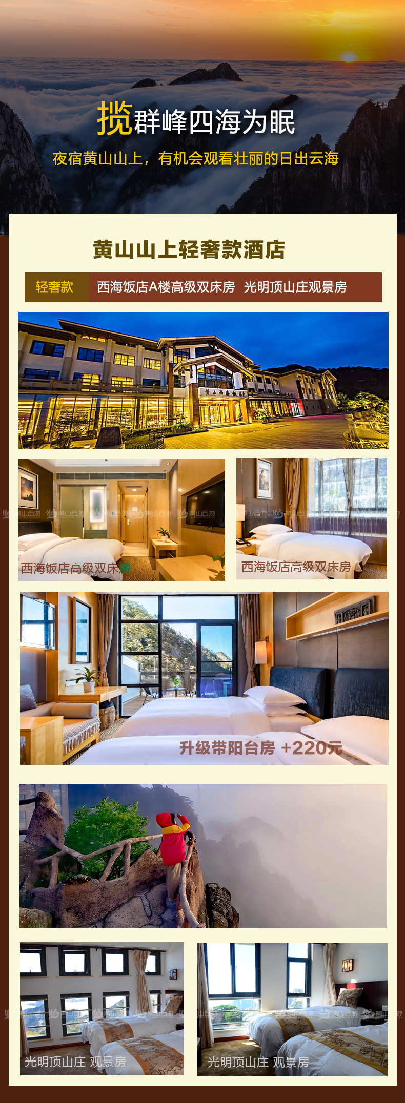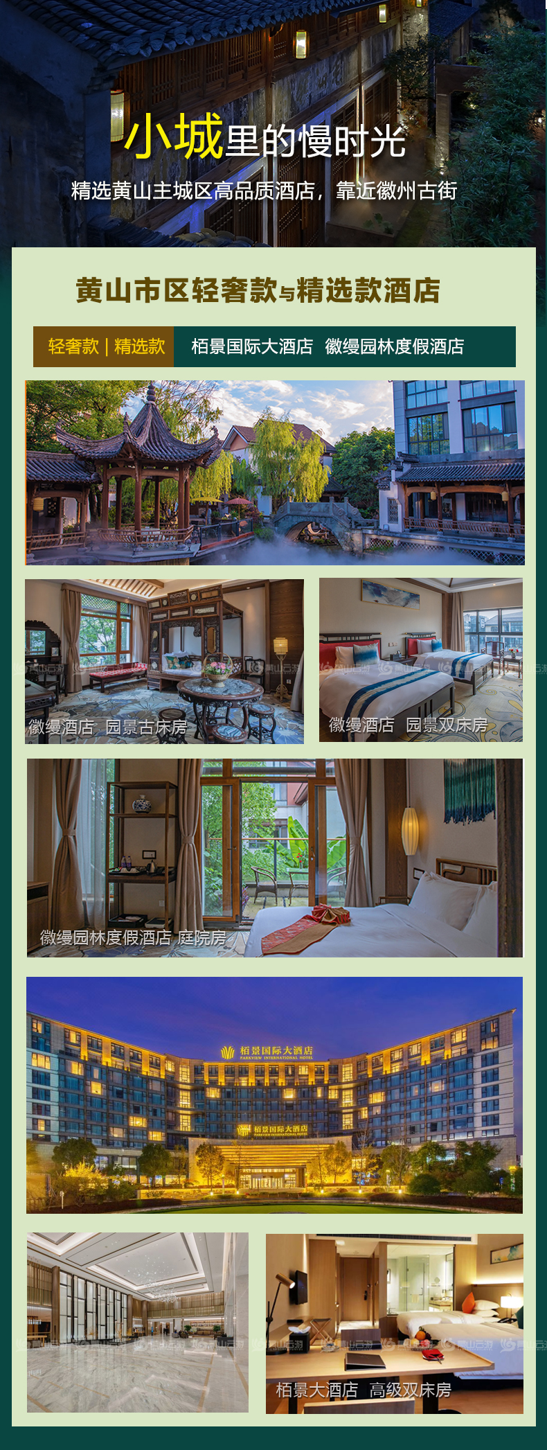【轻奢款酒店】市区酒店2晚(徽缦园林酒店或栢景国际大酒店);山顶酒店1晚参考(光明顶观景标间或西海饭店A楼高级标间)