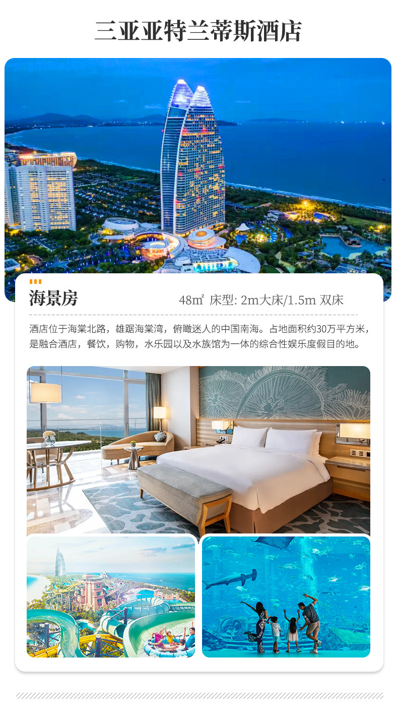 1晚 三亚亚特兰蒂斯酒店-海景房(含畅玩水世界门票和水族馆门票(限定2大2小11岁以下))