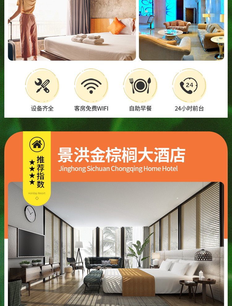 【第三晚景洪】:金棕榈、椰林、雅兰特、一景夕、纳里、王府温泉或同级酒店