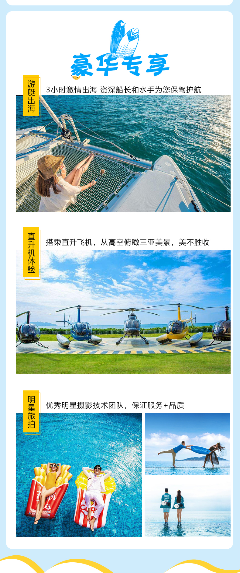 海南三亚5天4晚私家团(多酒店可选+游艇出海+直升机体验+亚特兰蒂斯水世界+蜈支洲岛+热带天堂森林公园+明星基地旅拍)燃油附加费(以实际收费标准为准,如遇政府或航空公司政策性调整燃油税费,在未出票的情况下将进行多退少补)