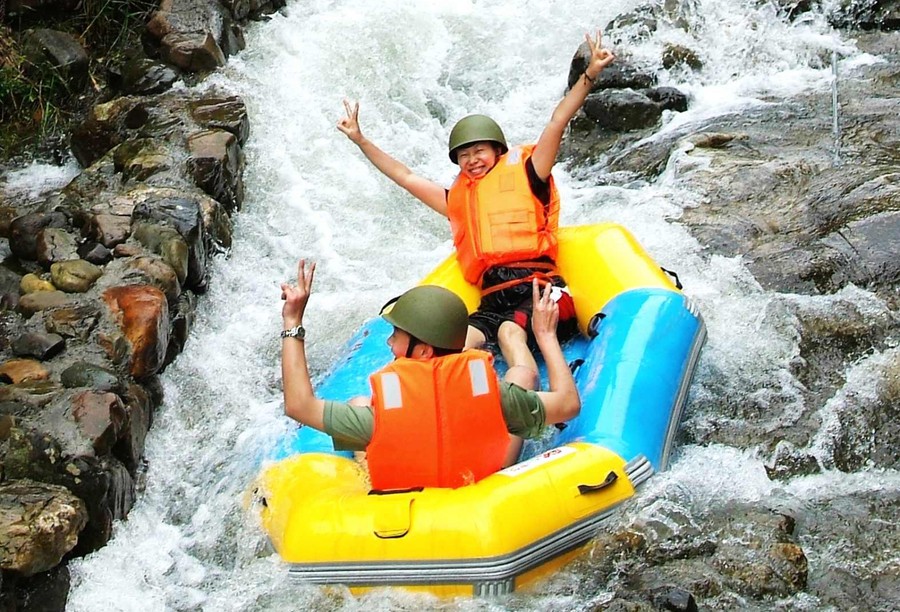 保留其原始风貌,浑然天成,漂流河道全长3.8公里,总落差达182米,漂流落差达160多处,极速落差高达17米,长80多米,在峡谷密林中穿梭,100多个大小落差产生澎湃的激流,