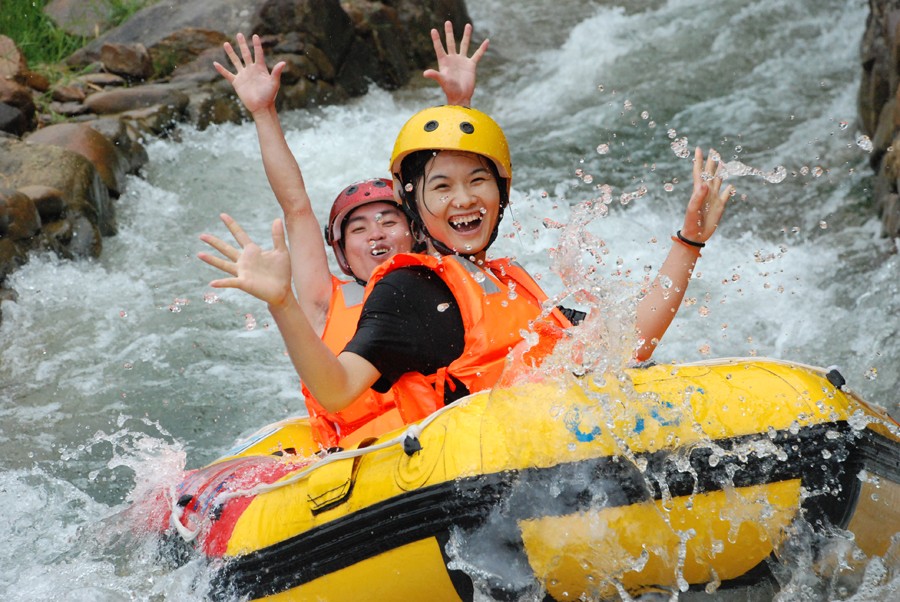 13:00 体验『碧海湾漂流』(自费100元),此漂流连接大海,因生态原始,以海湾壮观,海岛壮丽,峡谷山峰幽深险峻、怪石奇异、溪水清澈而得名。峡谷漂流、山泉水上游乐园、动感冲浪一站式体验。