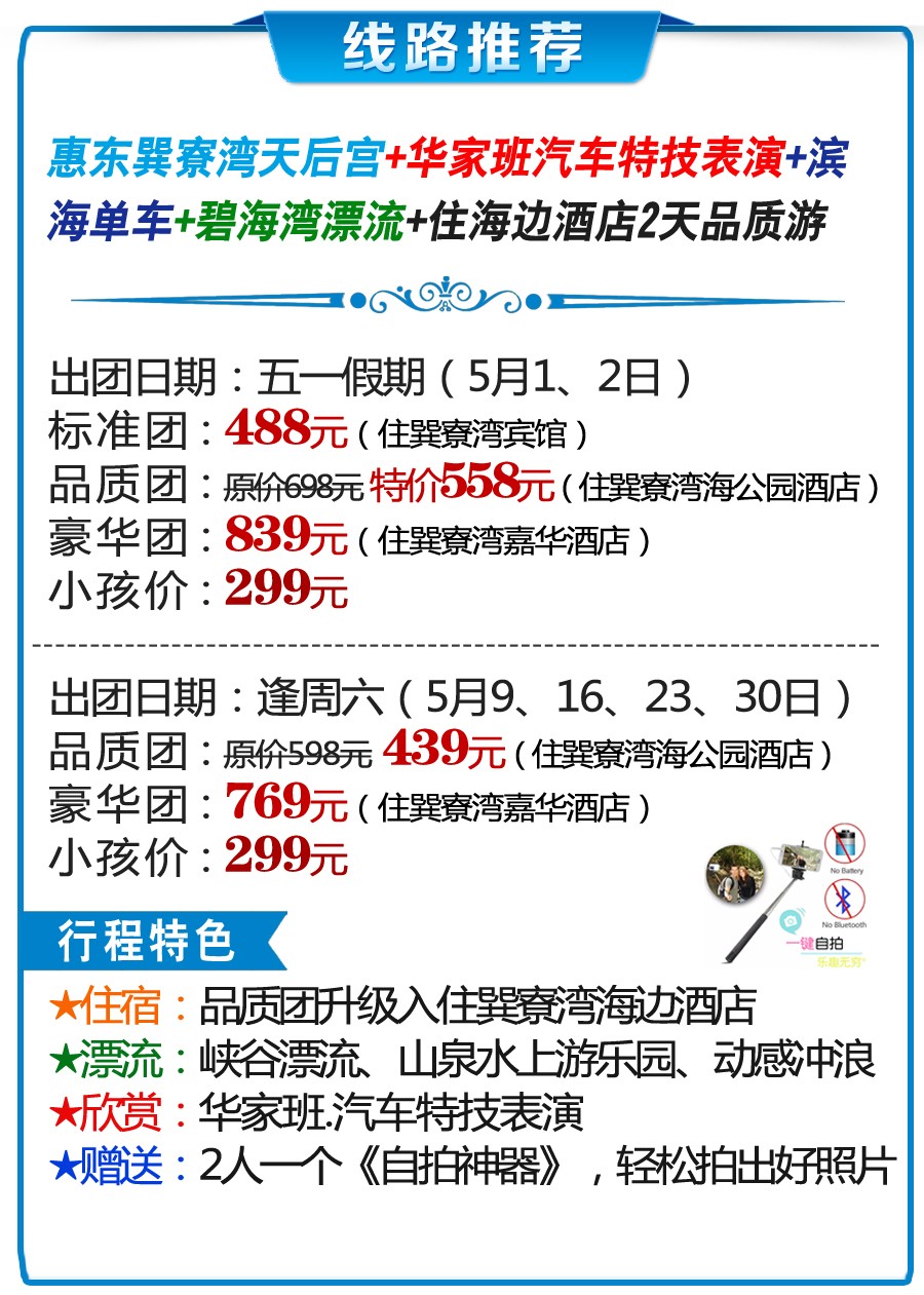 行程安排:酒店车程约40分钟→碧海湾漂流(自费100元,赠送滨海单车)车程约1小时→深圳