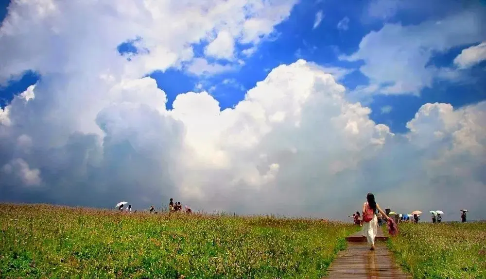 舜王坪:一年四季景色迥异,暖春山花烂漫、蝶舞花海;盛夏绿波荡漾,凉风徐徐;金秋果实累累,万山红遍;隆冬林海雪原,银装素裹。特别是七八月份5000余亩的草甸上繁花似锦、犹如天宫飘落的地毯,人在其中,云在脚下,宛如天上人间。