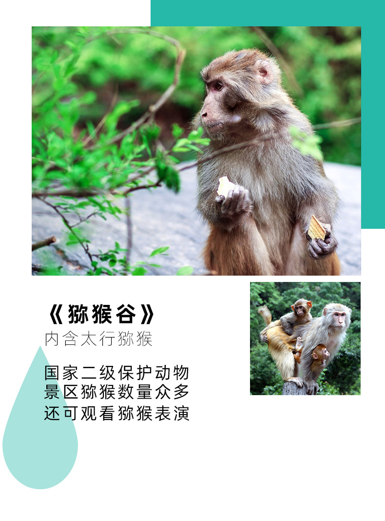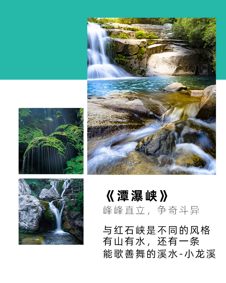 景区介绍 | 产品 ★ 全程不进店、无自费景点,轻松无忧游云台山,全省独家保证百分百纯玩; 云台山位于河南省修武县境内,是全球首批世界地质公园,同时又是河南省唯一一个集国家重点风景名胜区、国家5A级景区、国家地质公园、国家森林公园、国家水利风景名胜区、国家猕猴自然保护区六个国家级于一体的风景名胜区。景区面积190平方公里。 云台山满山覆盖的原始生林,深邃幽静的沟谷溪潭,千姿百态的飞瀑流泉,如诗如画的奇峰异石,形成了云台山独特完美的自然景观。云台山以山称奇及独有的瀑布景观,让人留连忘返。 | ||