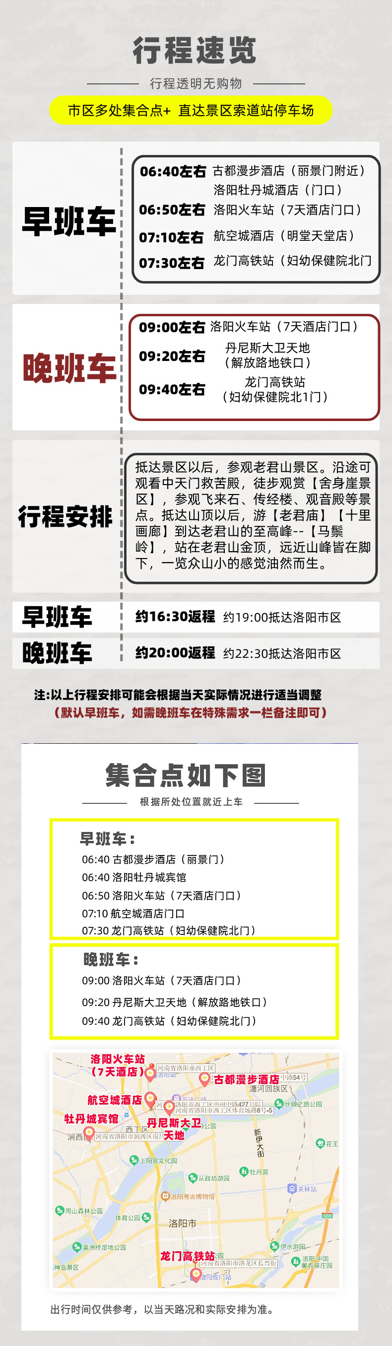 | 出发城市 | 郑州 | 交通方式 | 汽车去汽车回 | 发团日期 | 天天发团 | 参团性质 | 常规团 |
