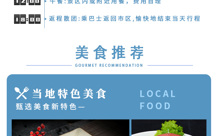 自由用餐时间(餐费自理)可由导游组织AA中餐(30元/人起)