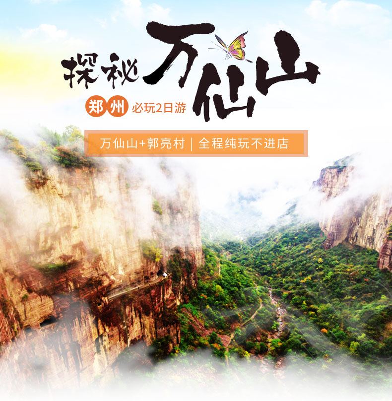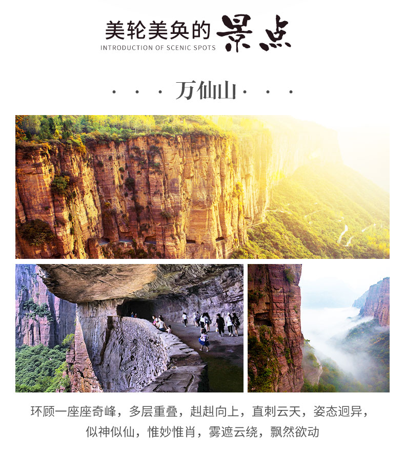 【集合时间】:6:30绿城广; 6:50紫荆山。 早上7:00集合完毕,后乘车赴新乡(160公里,行车约3.5h)【万仙山风景区】总面积64平方公里,国家AAAAA旅游景区。是周末旅游、避暑休闲胜地