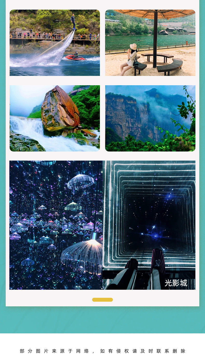 游览大片怪石和碧水结合的【奇石苑】、还有大大小小的瀑布和小水潭相互辉映,各种嶙峋的怪石在河滩上,很适合探索寻找新的拍摄机位,让人遐想万千; 欣赏从海拔580米的断崖上跌落到海拔260米的沟底中,落差达320米的【见龙瀑】,似云龙飞腾,声威势大,气贯如虹; 探寻人称“中原小九寨”的【翡翠潭】,清澈透亮的潭水,颜色从黄到绿到孔雀蓝的渐变; 于千瀑谷中一眼识得“锥击青石注幽潭,一缕清香水涧兰”的【玉女瀑】形如婀娜多姿的玉女,亭立于碧潭之中,风华绝代,美憾凡尘.... 一路美景逍遥自在的清肺之旅,欣赏桃花坪、樱花大道(花期分季节性观赏)