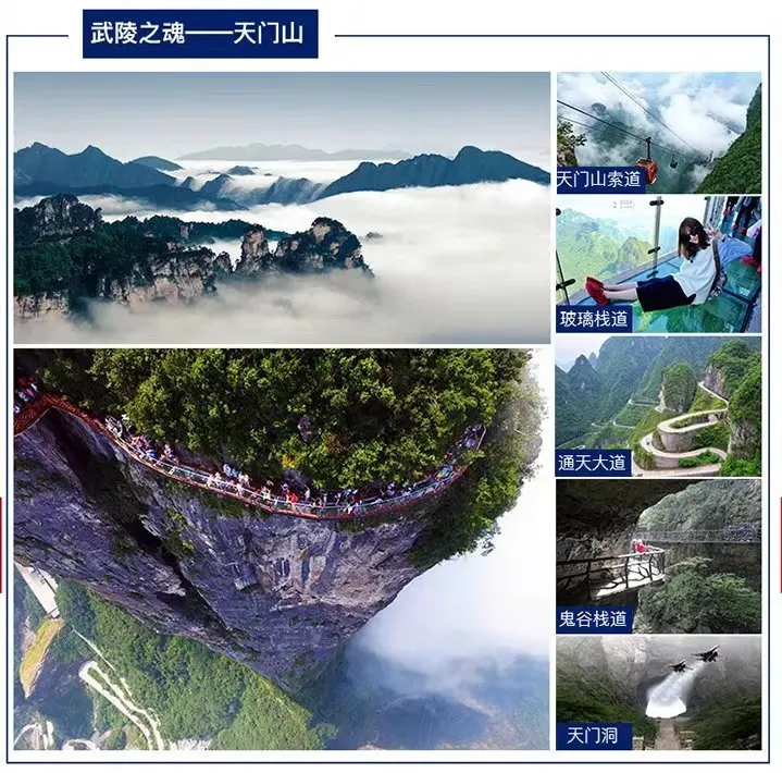 01 各地赴张家界-国家森林公园--袁家界 郑州前往张家界。 郑州乘坐航班:CZ8657(郑州08:05-张家界09:45)前往张家界,抵达后由专人接团,BUS赴中国第一个国家森林公园——【张家界国家森林公园】(大门票已含,景区內小交通百龙天梯单程,天子山索道单程已含),游览【袁家界核心景区】《阿凡达》悬浮山原型——哈利路亚山(游览时间约1.5小时),探寻影视阿凡达中群山漂浮、星罗棋布的玄幻莫测世界;参观云雾飘绕、峰峦叠嶂、气势磅礴的迷魂台,及天下第一桥等空中绝景; 【温馨提醒】 1、我司专职接站人员会提前一天与客人进行联系,为避免漏接、误接,敬请告知客人在与接站人员取得联系后告知准确的车次以及抵达时间; 2、我司专职导游在走行程前一晚会与客人进行联系,敬请提醒客人收到短信后进行回复并详细阅读导游短信通知内容。 3、交通类---进入景区以后,景点与景点之间全是用景区内的免费的环保车提供服务,并非一个团一个专车,而且一个团有可能不能坐同一辆环保车前往下一下景点,景区游人众多, 请一定要在 导游指定的地点汇合,不能走散,更不要将随身所带物品遗失在环保车上;旺季游人众多,排队情况时有发生,敬请谅解; 4、穿着类---张家界以山为主,为方便在山区游览,请穿平跟鞋,建议不穿裙子,自带雨具、太阳帽、胶卷等物品; 5、安全类---景区内群猴众多,请不要近距离接近猴群,更不要去触摸山上的野生动物,以免发生伤害事件。早晚温差很大,请根据当天的天气预报随身携带厚衣服,以便随时添加。在景区内请不要随意攀爬; 6、核心景区如遇高峰期,环保车、电梯等会出现大面积排队情况,请配合导游的安排,尽量错开高峰期; 用餐:无 住宿:张家界 02 天门山国家森林公园--芙蓉镇--凤凰古城 早餐后游览“武陵之魂”湘西神山【天门山国家森林公园】(含天门山景区首道大门票):乘世界最长高山客运索道上山或下山:游览碧野瑶台、觅仙奇境、天门洞开景区,体验“云在脚下,奇峰尽览,万象目中”的豪迈感觉。观五大奇观,【天门索道】:索道线路斜长7455米,上、下站水平高差1279米,是世界最长的单线循环脱挂抱索器车厢式索道。【玻璃栈道】这条看着就让人腿软的玻璃栈道给人带来的刺激震撼感。【通天大道】:被称为通天大道的盘山公路共计99弯,“天下第一公路奇观”横空出世,垂直高差达千米左右。【天门洞开】:九百九十九级台阶登上天门洞,是罕见的高海拔穿山溶洞。【鬼谷栈道】:栈道全长1600米,平均海拔为1400米,全线立于万丈悬崖的中间,给人以与悬崖共起伏同屈伸的感觉。 后乘车赴芙蓉镇,游览挂在瀑布上的土家第一镇千年古镇-【芙蓉镇】(首道大门票以含),一座拥有两千多年历史,土家族人聚居的古镇,因宏伟瀑布穿梭其中,又称“挂在瀑布上的千年古镇”;这里有保存完好的五里青石板街,两边是板门店铺、土家吊脚楼,街两旁摆满了琳琅满目、富有古镇特色的精美物品,随行时而出现的古镇米豆腐,拾级而上的石板街,土家人手工绝活”织锦”,电影拍摄旧景贞节牌坊等,把人拉入了刘晓庆与姜文主演的《芙蓉镇》电影场景里,别有一番风味。 之后乘车前往凤凰古城,游览【凤凰古城】(凤凰古城接驳车 28 元/人已含):体验和感受凤凰古城的精华:一泓沱水绕城过、一条红红石板街、一道风雨古城墙、一座雄伟古城楼、一个美丽彩虹桥、一排小桥吊脚楼。沿沱江两岸漫步,欣赏沙湾吊角楼走在古老的悠长的红石板街上,您会看到有叫人馋涎欲滴的小吃,叫不出名的土特产,各式各样的银器,让人惊叹的苗家老人的剪纸、葫芦丝等;如果白天的凤凰是一位纯朴、美丽的苗家女子,那么夜间的凤凰就是一个多情、大方的湘西姑娘。站在沱江岸边,仿佛置身于灯的世界,歌的海洋。在霓虹灯下感受古城的温馨与浪漫,一场美丽的邂逅正等着您......。 03 凤凰--湘西苗寨--宝峰湖--民俗歌舞晚 早餐后乘车抵达古丈县墨戎镇,古丈人杰地灵,素有“歌舞之乡”之美誉,这里是当代名扬海内外的歌唱家宋祖英的家乡,代表作《小背篓》、《古丈茶歌》。赠送游览大湘西地区大、最美丽、民俗风情最浓郁的古朴苗寨【湘西苗寨】。 后乘车赴张家界游览【宝峰湖】宝峰湖水深72米,长2.5米公里,集山水于一体,融民俗风情于一身,尤以奇秀的高峡平湖绝景、“飞流直下三千尺”的宝峰飞瀑、神秘的深山古寺闻名。电视剧《西游记》中花果山水帘洞外景就拍摄于“奇峰飞瀑”。湖中有两座叠翠小岛,近岸奇峰屹立,峰回水转。泛舟漫游,只见一湖绿水半湖倒影,充满诗情画意。 晚上赠送观赏:非物质文化演艺经典【张家界大型民俗歌舞晚会】(此为赠送项目,不去不退。)浓缩了张家界亿万年的历史文化与传说,神奇瑰丽的武陵山水,滋养着一代又一代的湘西人。土家族、苗族、白族、瑶族、侗族等少数民族在这片爱的家园和谐共生,创造了丰富而独特的地域文化,感受这片神秘土地的民族风情,你会在边城的烟雨中遇见翠翠一样的美丽姑娘,你会在如诗如画,如歌如梦的湘西大地,邂逅梦中的桃花源。 04 综合超市--土司王宫-博物馆 早餐后游览土家民族精粹和传统手工艺术展览中心—【张家界特产超市】该中心以涉及土家传统文化、张家界特色纯天然植物研究等领域(游览时间不低于一小时),后赠送参观千年王府【土司王宫】土家历史文物、民情风俗应有尽有,