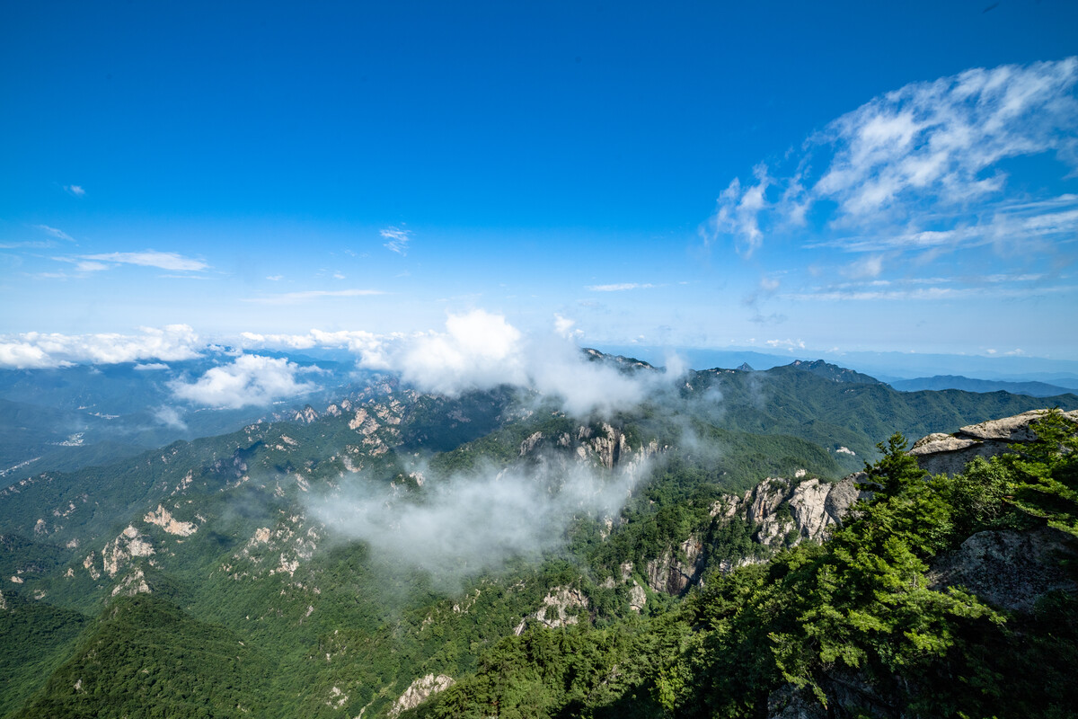 白云山国家森林公园,位于河南省洛阳市嵩县西南部伏牛山原始林区,总面积168平方公里。公园地跨长江、黄河、淮河三大流域,地处北亚热带向暖温带过渡区。平均海拔1800米,1300米以上的山峰有103座,有动物275种,植物2000余种,被专家誉为“自然博物馆”。景区内森林覆盖率高达99.2%,盛夏温度不超过26℃,所有宾馆均处在海拔1500米以上,不用任何空调、电扇,是理想的避暑度假和休闲胜地。