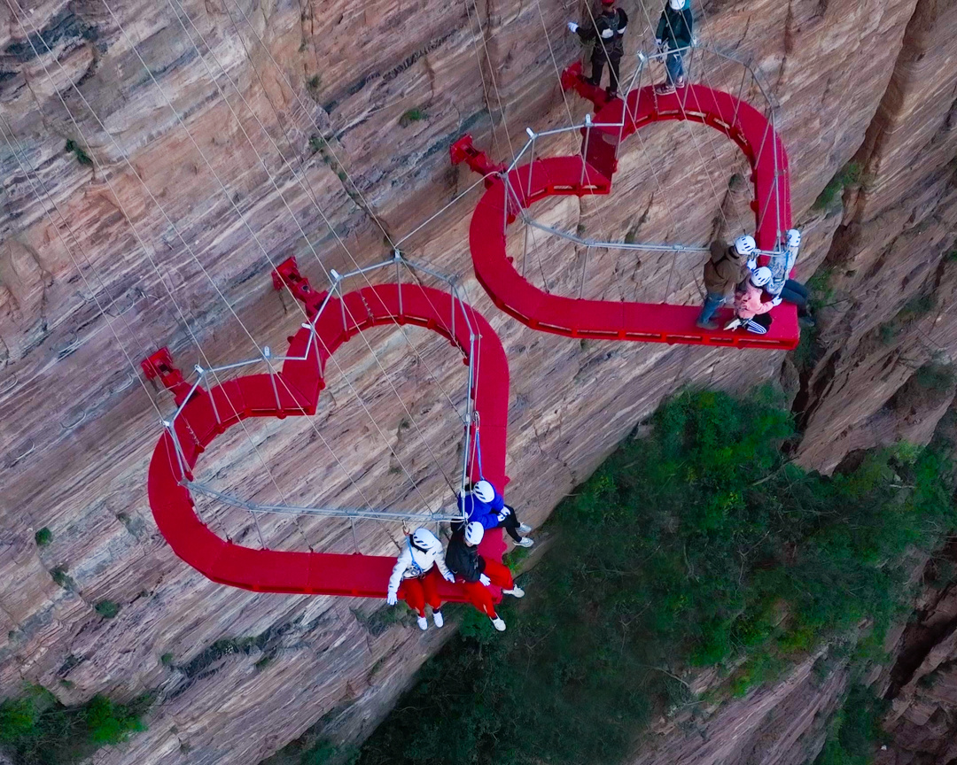 河南省新乡市宝泉崖天下景区,宝泉崖天下景区位于宝泉大峡谷西侧绝壁之上,是以“崖”为主题的特色景区,集崖上观光游览、悬崖项目体验、崖顶高端民宿于一体的综合性休闲旅游目的地。