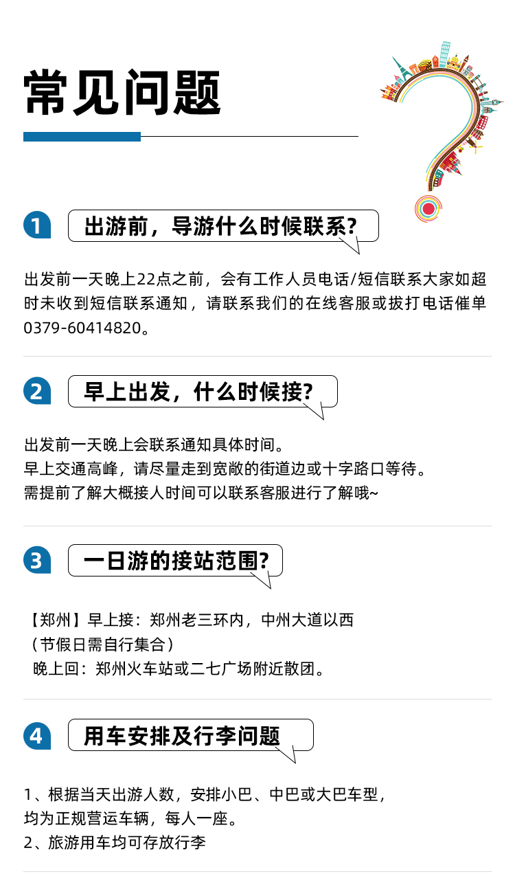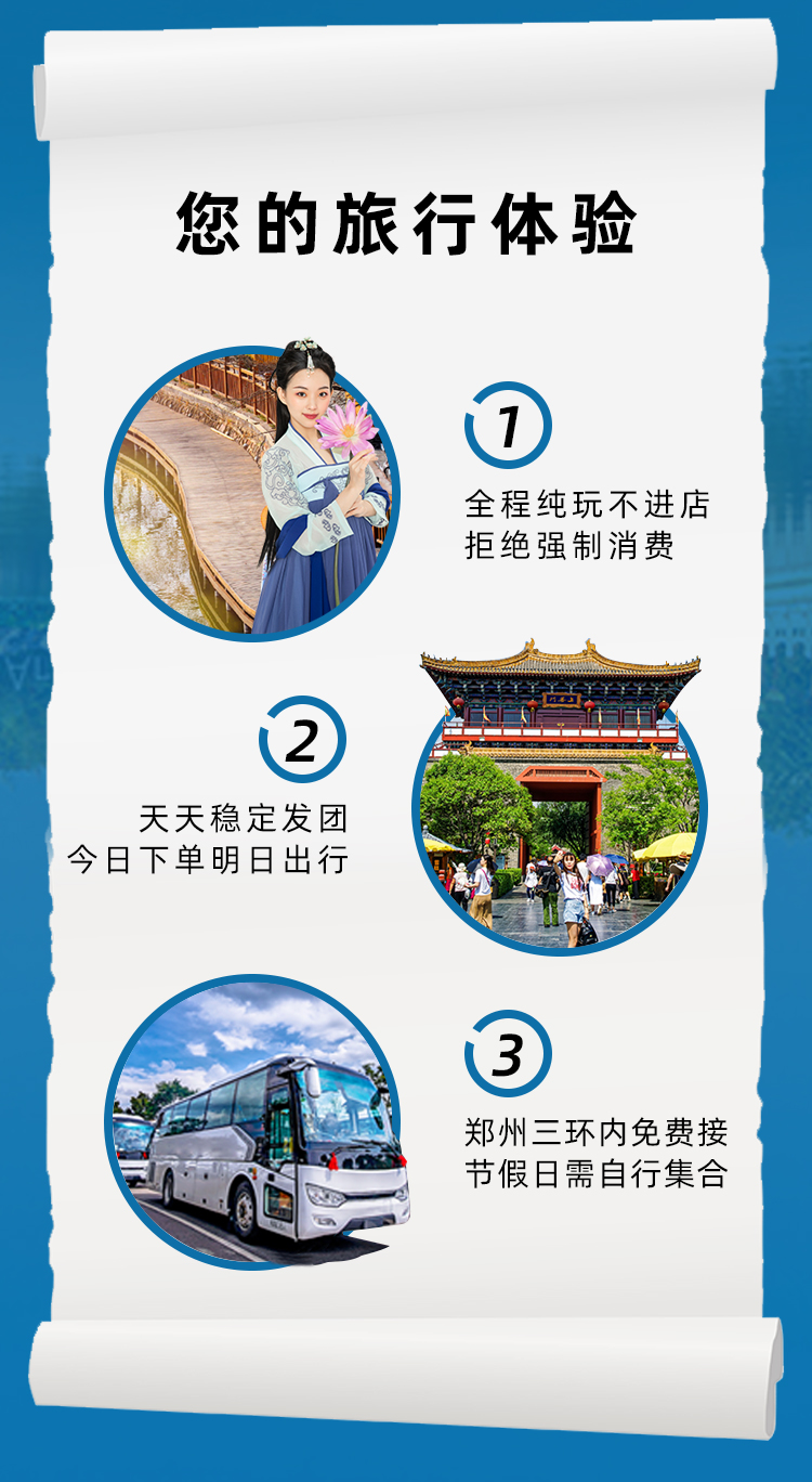 线路特色郑州到去开封一日游·清明上河园/开封府/包公祠(郑州三环内接 每天发团 纯玩不进店 河南周边旅游攻略) 郑州到去洛阳包车游-老君山/少林寺/白马寺/清明上河园/只有河南等众多景点/多种车型可选/本地老司机服务/你的旅行你做主
